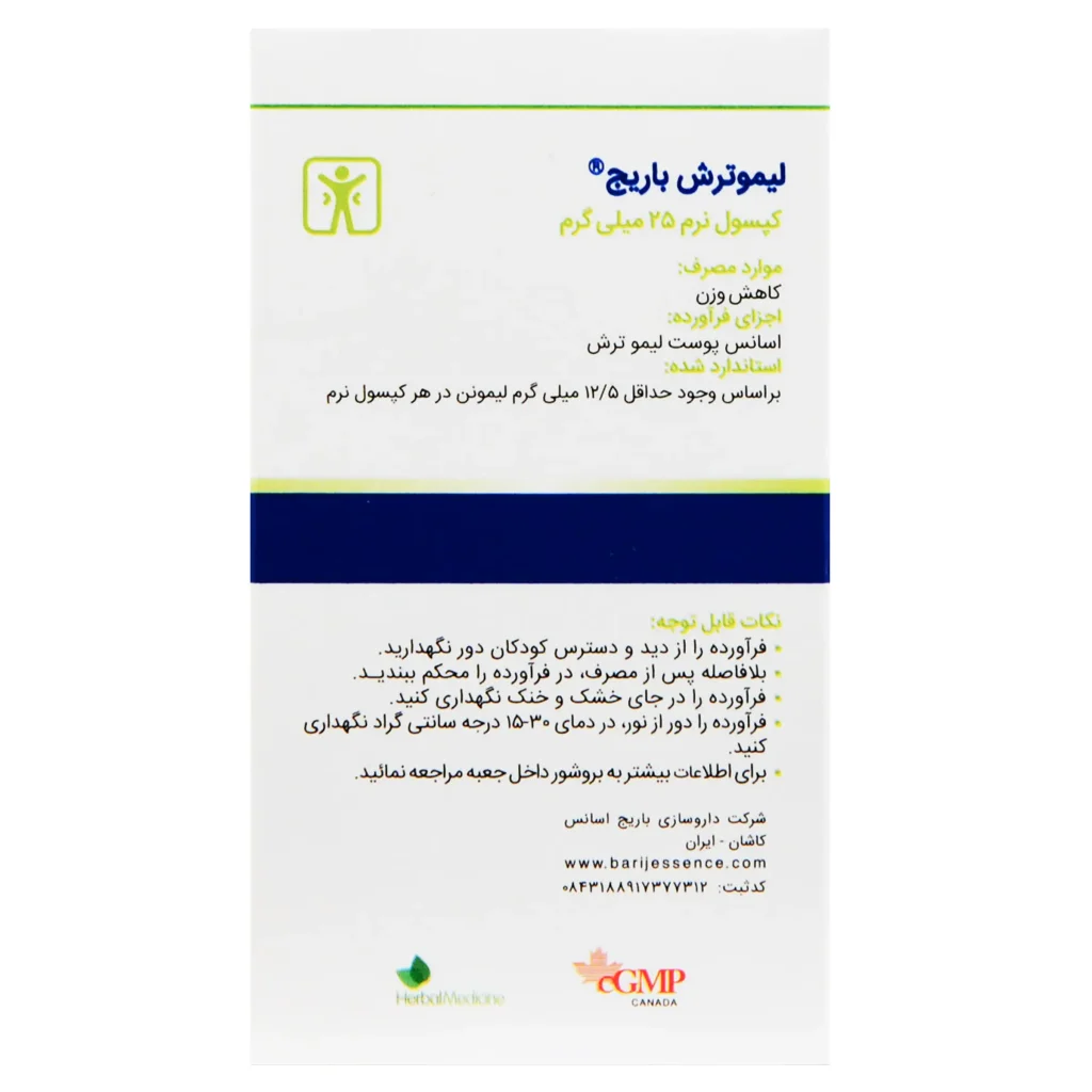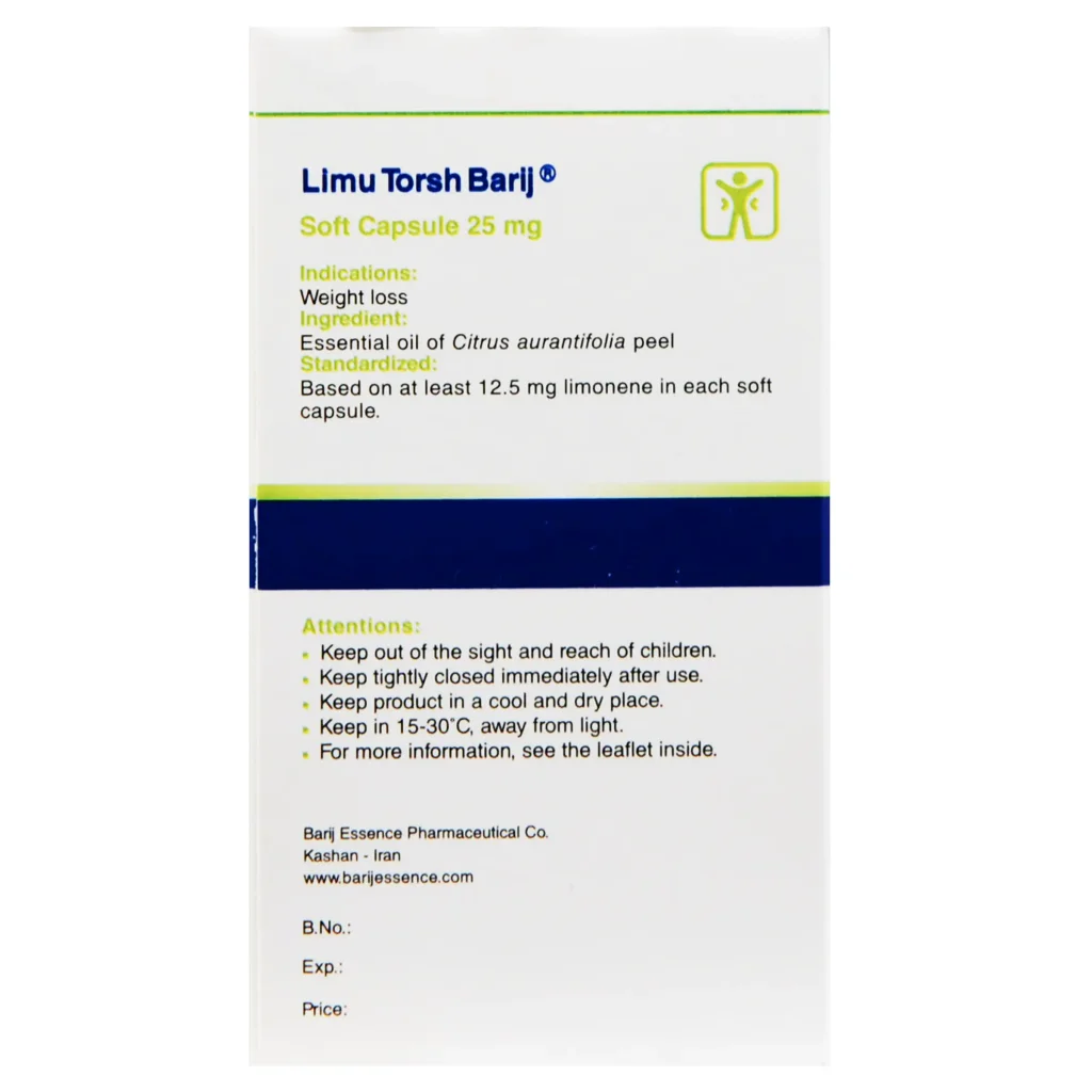 سافت ژل لیموترش 25 میلی گرم باریج اسانس با داشتن عصاره لیمو یکی از بهترین فرآوردههای حاوی مرکبات میباشد که میتواند تاًثیر چشمگیری در کاهش وزن و تثبیت آن داشته باشد.