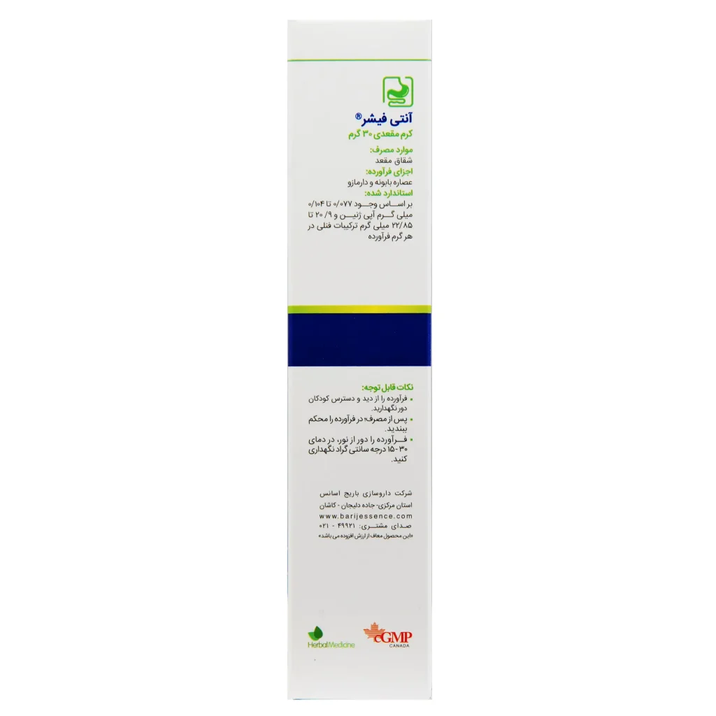 کرم آنتی فیشر باریج اسانس ازجمله بهترین داروهای گیاهی برای درمان شقاق مقعدی است. شقاق مقعدی نوعی بریدگی و پارگی پوست است که معمولاً اسهال یا یبوست طولانی مدت منجر به بروز آن میشود. بیماریهای مقعدی با توجه به اینکه برای فرد مبتلا در ناحیه نشیمنگاه درد زیادی ایجاد کرده و این درد در زمان اجابت مزاج تشدید میشود، برای فرد مبتلا یکی از آزاردهندهترین بیماریها به حساب میآیند.