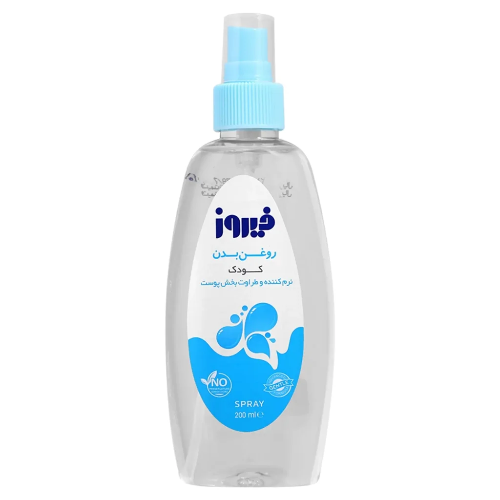 روغن بدن کودک فیروز، دارای مواد نرم کننده و مرطوب کننده است به همین سبب باعث نرم شدن پوست شده و جایگزین چربی از دست رفته پوست حساس کودک است. این روغن نه تنها مناسب برای ماساژ کودکان بوده، بلکه انتخاب اول اغلب بزرگسالان برای ماساژ و مراقبتهای پوستی هم بوده است. همچنین این محصول گزینه مناسبی برای برنزه شدن زیرنور آفتاب است؛ چرا که این محصول چربی پوست را در مقابل نور آفتاب حفظ میکند و در طی فرآیند تغییر رنگ پوست، چربیهای ضروری پوست از بین نمیرود. روغن بدن کودک فیروز، فاقد مواد حساسیتزا و مواد نگهدارنده رنگی است. همچنین اغلب والدین برای درمان پوسته پوسته شدن سر نوزادان از این روغن استفاده میکنند.