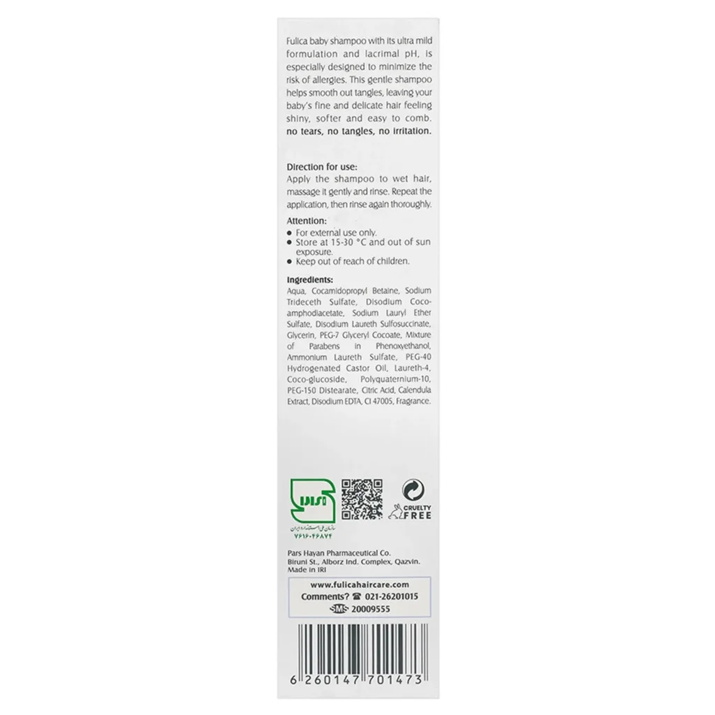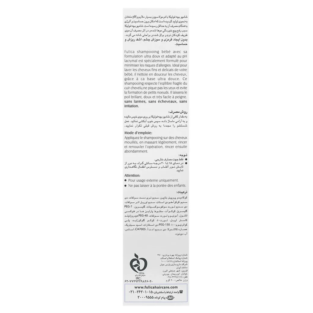شامپو بچه بسیار ملایم فولیکا، یکی از محصولات بهداشتی برای موی کودکان است که نرمکننده داشته و برای شستشوی روزانه موی کودک مناسب خواهدبود. این شامپو به واسطه داشتن نرمکننده، میتواند بافت موی کودک را نرم کرده و بدون ایجاد سوزش در چشم کودک، نظافت موها را به دنبال داشته باشد. این محصول فرمولاسیونی ملایم داشته و به مو و چشم کودک آسیب نمیرساند.