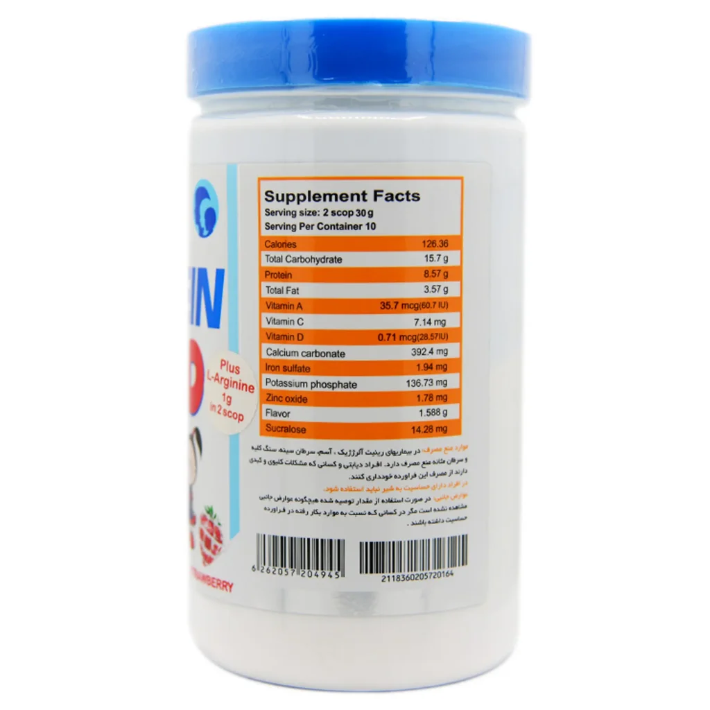 - برای کودکان 2 تا 5 سال: روزانه، یک پیمانه (30 گرمی) از این پودر در مقدار کافی آب حل کرده و مصرف شود.