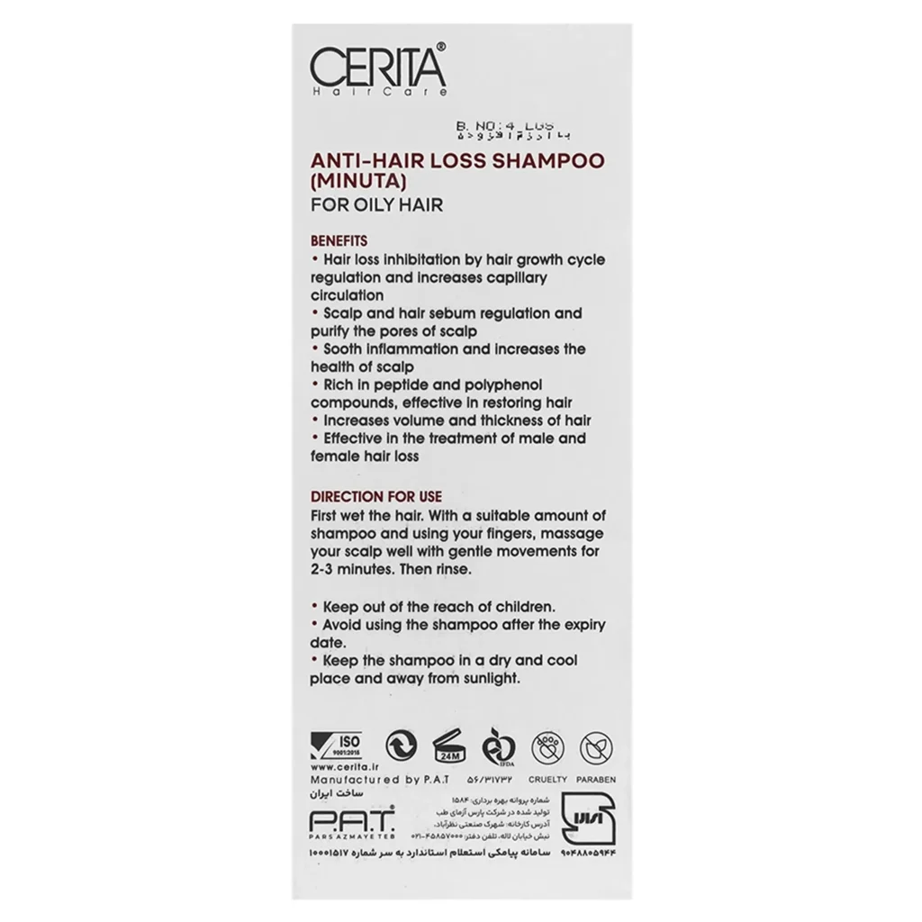 ویژگیهای شامپو تقویتی ضد ریزش موهای چرب مینوتا سریتا: