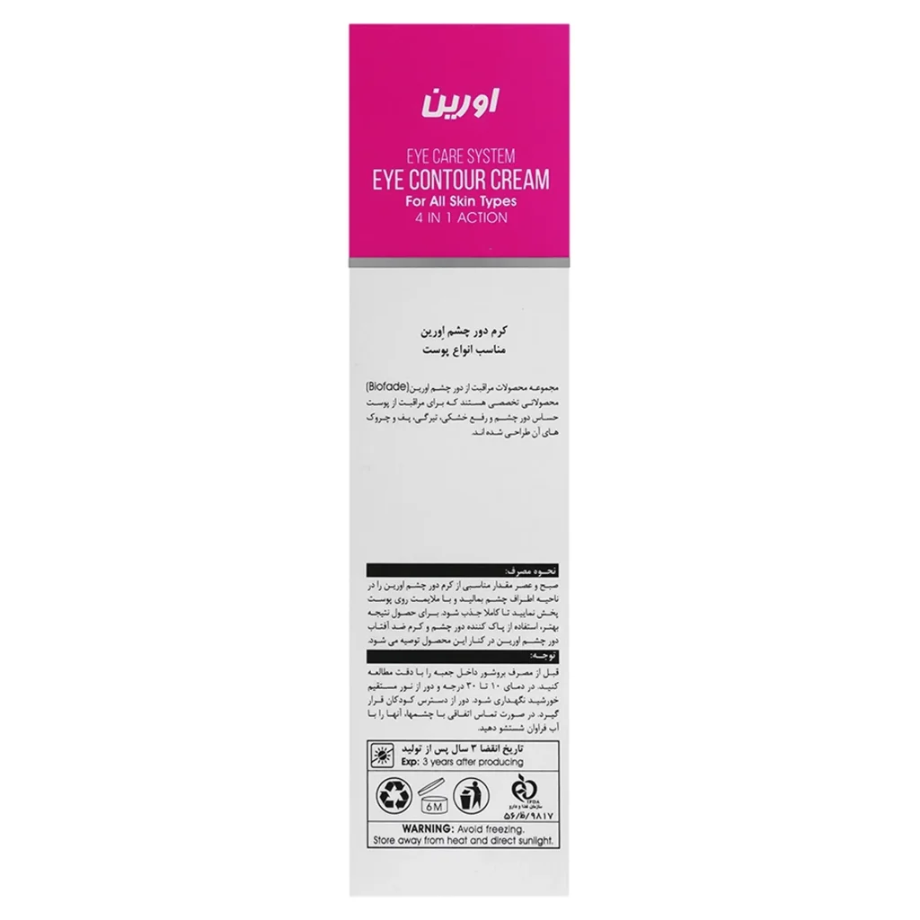 یکی از مهم ترین قسمتهای که در زیبایی پوست تاثیر بسیار زیادی دارد، پوست دور چشم است که با به وجود آمدن چین و چروک، سیاهی و پف در زیر چشم زیبایی ظاهری فرد را کاهش میدهد. پوست اطراف چشم بسیار نازک و حساس است و با افزایش سن، خشکی، کم آبی، خستگی دچار آسیب میشود. کرم دور چشم اورین یکی از کامل ترین و با کیفیت ترین محصول مراقبتی است و باعث آبرسانی، ترمیم، جوان سازی و روشن شدن بافت دور چشم میشود.