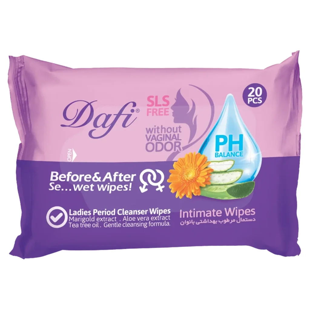 بسیاری از خانمها حساسیت زیادی به بهداشت محیط خارج از منزل دارند، برای این گروه و تمام خانمها و بخصوص شاغلین استفاده از دستمال مرطوب بهداشتی بانوان میتواند مفید و کمک رسان باشد. دستمال مرطوب مخصوص بانوان دافی با فرمولاسیون ویژه به شکل لطیف و موثری علاوه بر پاکسازی منطقه تناسلی بانوان نیاز های پوستی آن را رفع کرده و در عین حال هیچ ماده خطرناک و حساسیت زایی را در ترکیبات خود ندارد. این دستمالها با توجه به خاصیت ضد باکتری، ضد قارچ و ضد آلرژی خود، انتخاب بسیار مناسبی برای خانمها است. یکی از مزایای این دستمال فاقد پارابن بودن آن است. پارابنها گروهی از محصولات شیمیایی هستند که از ایجاد باکتری جلوگیری کرده و باعث افزایش طول عمر محصولات میشوند اما برای پوست و بدن مضر و آسیب رساناند. از این رو این محصولات دافی حساسیت زا نخواهد بود. وجود آلوئهورا باعث میشود تا سلولهای مرده پوست از بین رفته و سلولهای جوان جایگزین شوند و پوست، تازه و با طراوت بماند. با PH 5.5 از خشک شدن پوست جلوگیری میکند و برای خانمهای حساس بسیار مفید است.دافی برای کنترل بوی واژن و ایجاد احساس لطافت از ترکیب تعداد قابل توجهی از عناصر گیاهی استفاده کرده است تا بتواند احساس سبکی را به مصرف کننده انتقال دهد.