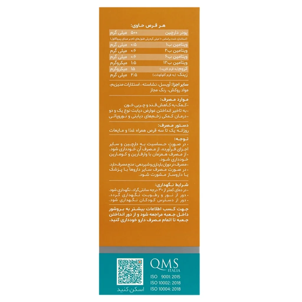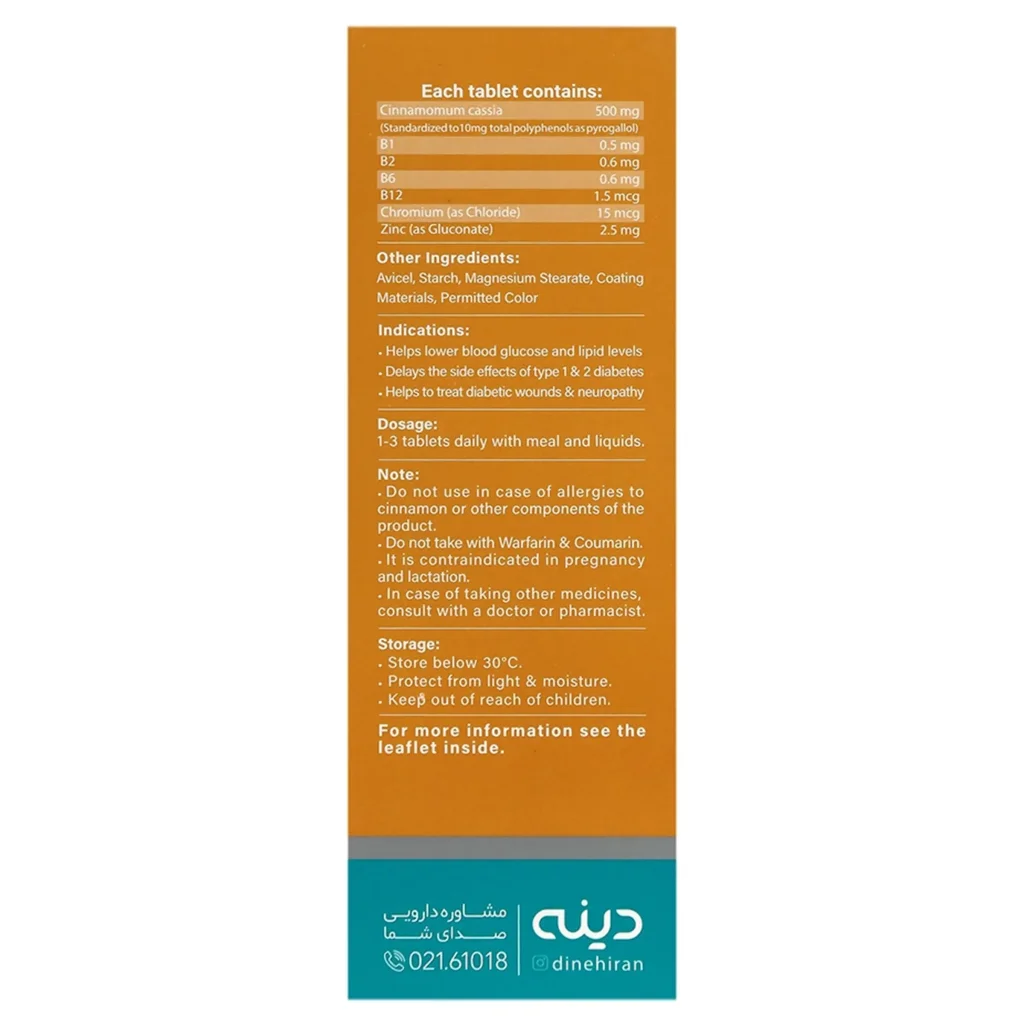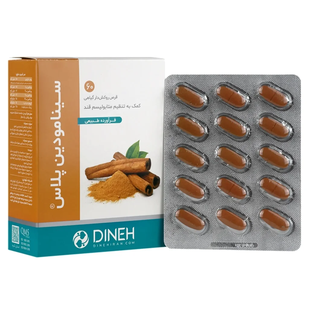 قرص سینامودین پلاس حاوی پودر دارچین، زینک، کروم و برخی ویتامین های گروه B است. این مکمل با کمک به تنظیم قند و چربی خون، مناسب افراد مبتلا به دیابت و اختلالات چربی خون است که باعث کنترل سطح قند خون و پیشگیری از ایجاد عوارض ناشی از دیابت موثر باشد
