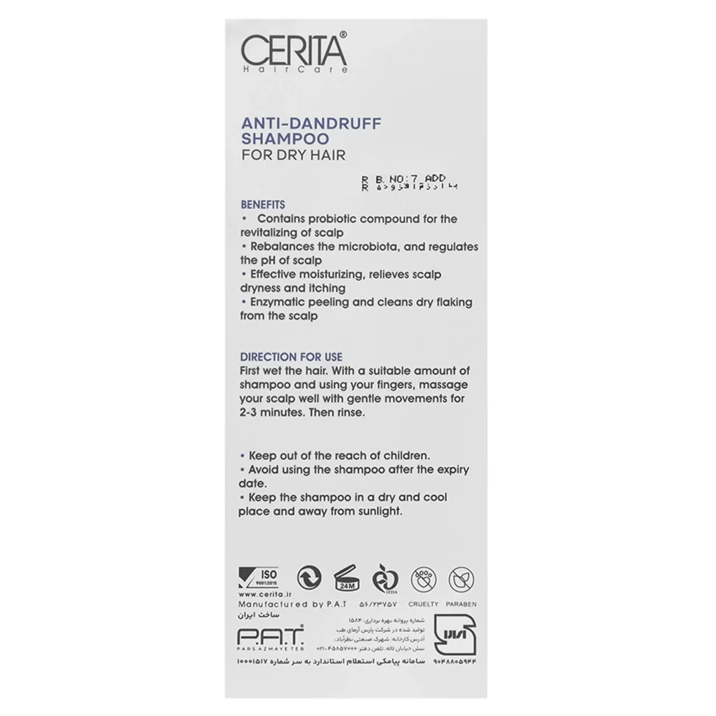ویژگیهای شامپو ضد شوره خشك( 200ميل) سريتا: