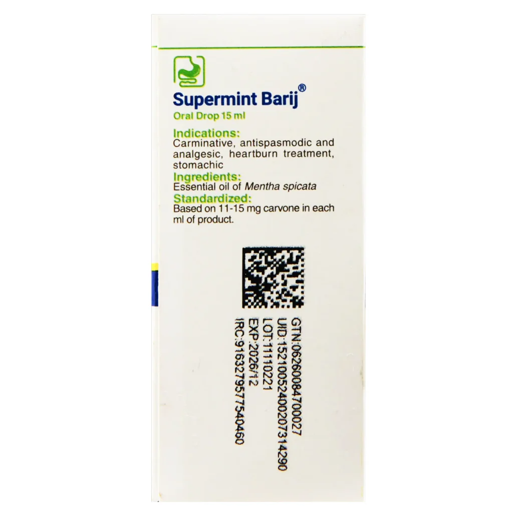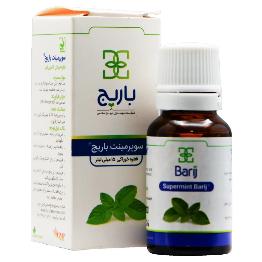 قطره سوپرمینت باریج اسانس حاوی عصاره گیاه نعنا بوده و به عنوان یک داروی گیاهی پرقدرت جهت رفع مشکلات گوارشی مانند سوهاضمه شناخته میشود. ترکیب منتول موجود در نعناع به تسکین مشکلات مختلف گوارشی مانند ناراحتی معده، سوء هاضمه، درد معده، نفخ و علائم سندرم روده تحریکپذیر (IBS) کمک میکند. منتول اثرات آرامبخشی بر روی عضلات معده دارد، بنابراین علائم IBS را تسکین میدهد. نعنا ماهیچههای معده را آرام میکند و جریان صفرا را که بدن برای هضم چربیها از آن استفاده میکند، بهبود میبخشد. به طور کلی مصرف سوپرمینت باریج اسانس منجر به مهار تکثیر هلیکوباکتر پیلوری، کاهش درد معده توسط خاصیت آنتیاسپاسمودیک و ضددرد، درمان علائم سندرم روده تحریکپذیر، درمان سوء هاضمه و تقویت معده و نفخ خواهد شد.