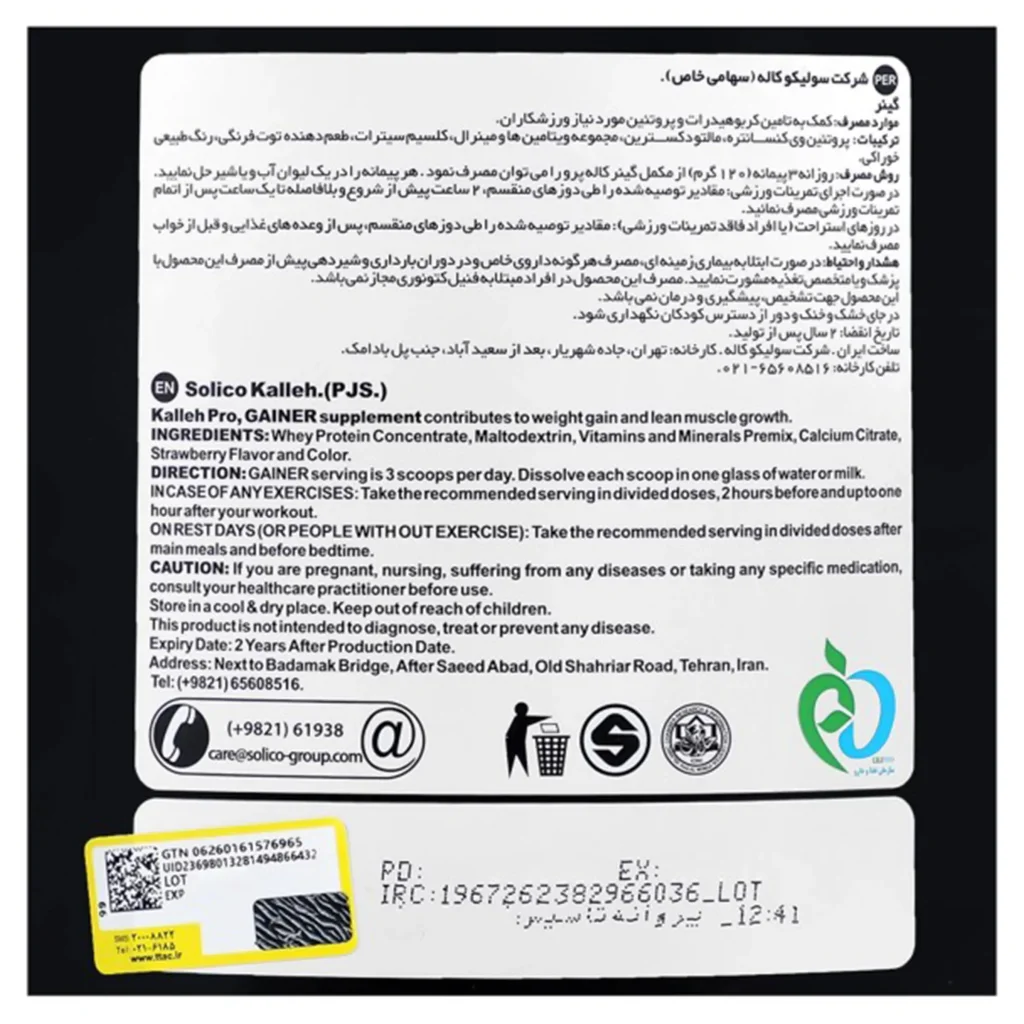 هشدار و احتیاط مصرفپودر گینر کاله(1800 گرمی)