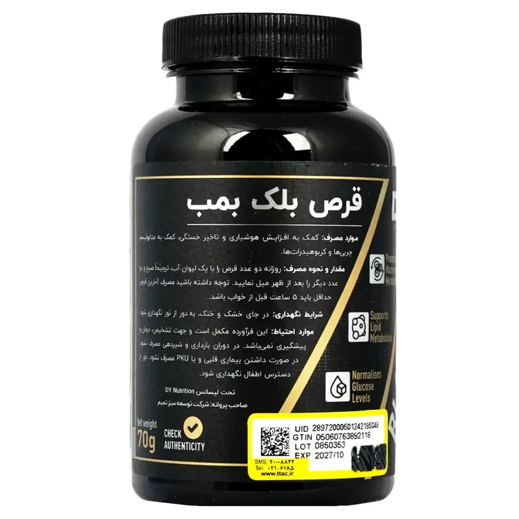 - تعداد: ۶۰ عدد قرص Blackbombs (مناسب برای ۱۵ روز مصرف کامل با دوز حداکثری).