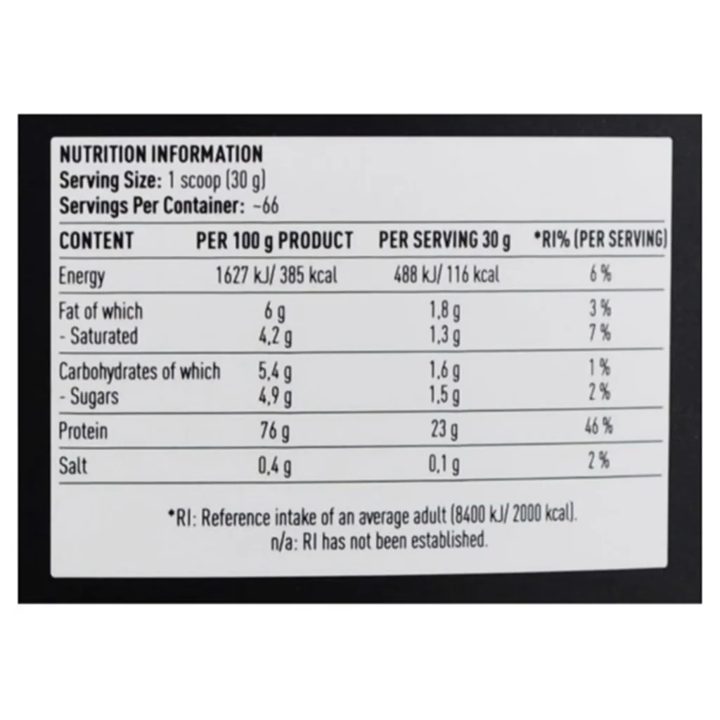 - پاسخ: طبق اطلاعات تغذیهای محصول، هر پیمانه ۳۰ گرمی حاوی حدود ۲۳ گرم پروتئین خالص است.