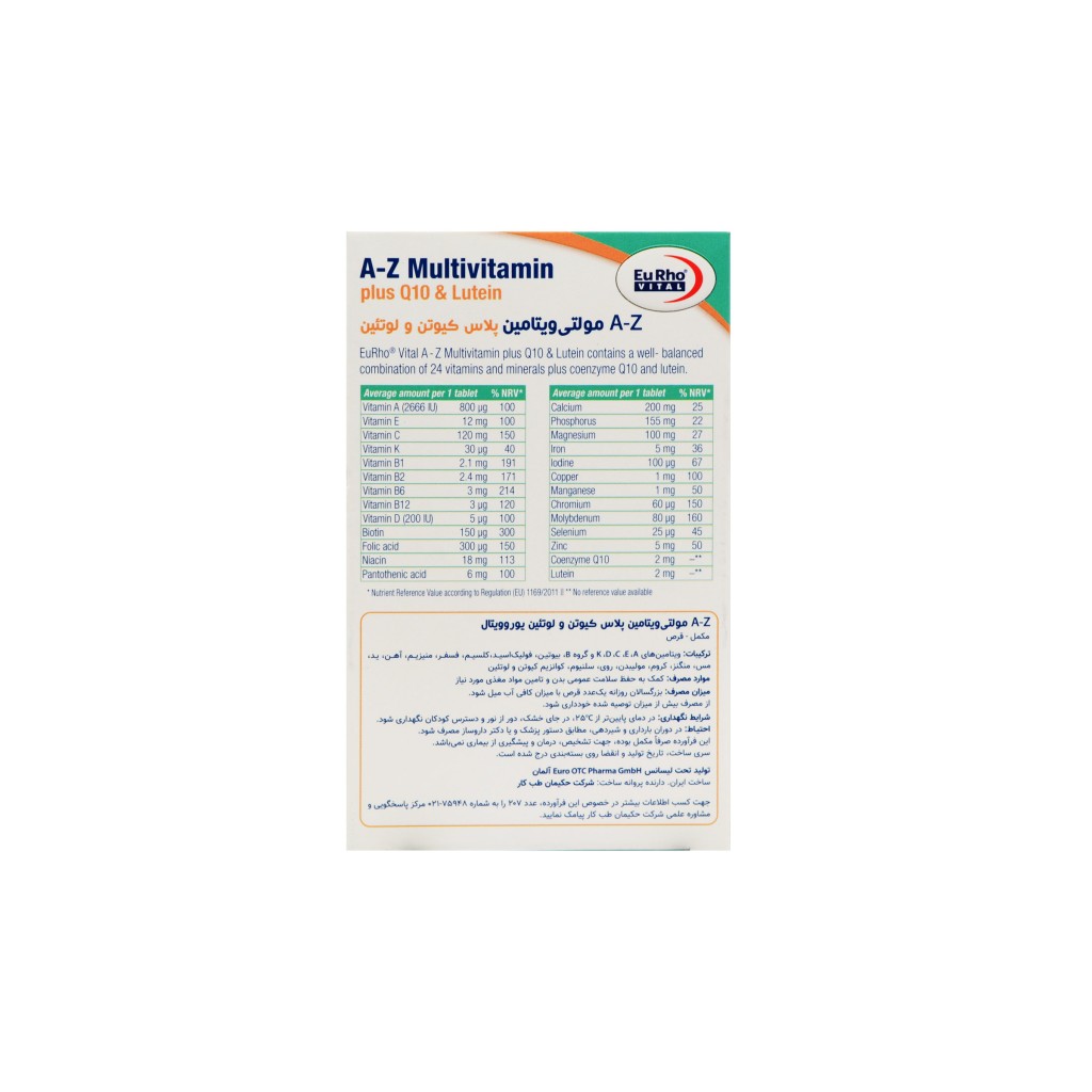 قرص A-Z مولتی ویتامین پلاس کیوتن و لوتئین یوروویتال