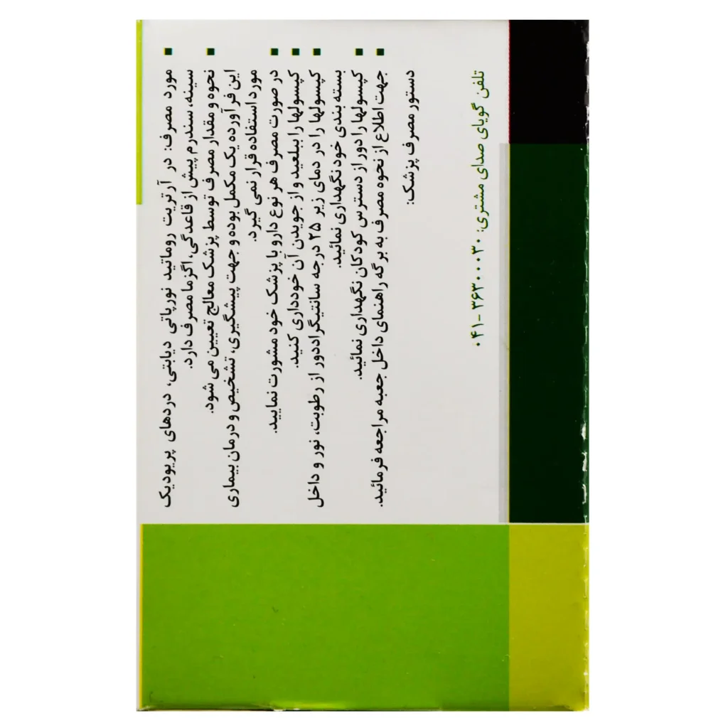 | احتیاط مصرف | از مصرف کپسولهای تاریخ گذشته خودداری نمایید. |