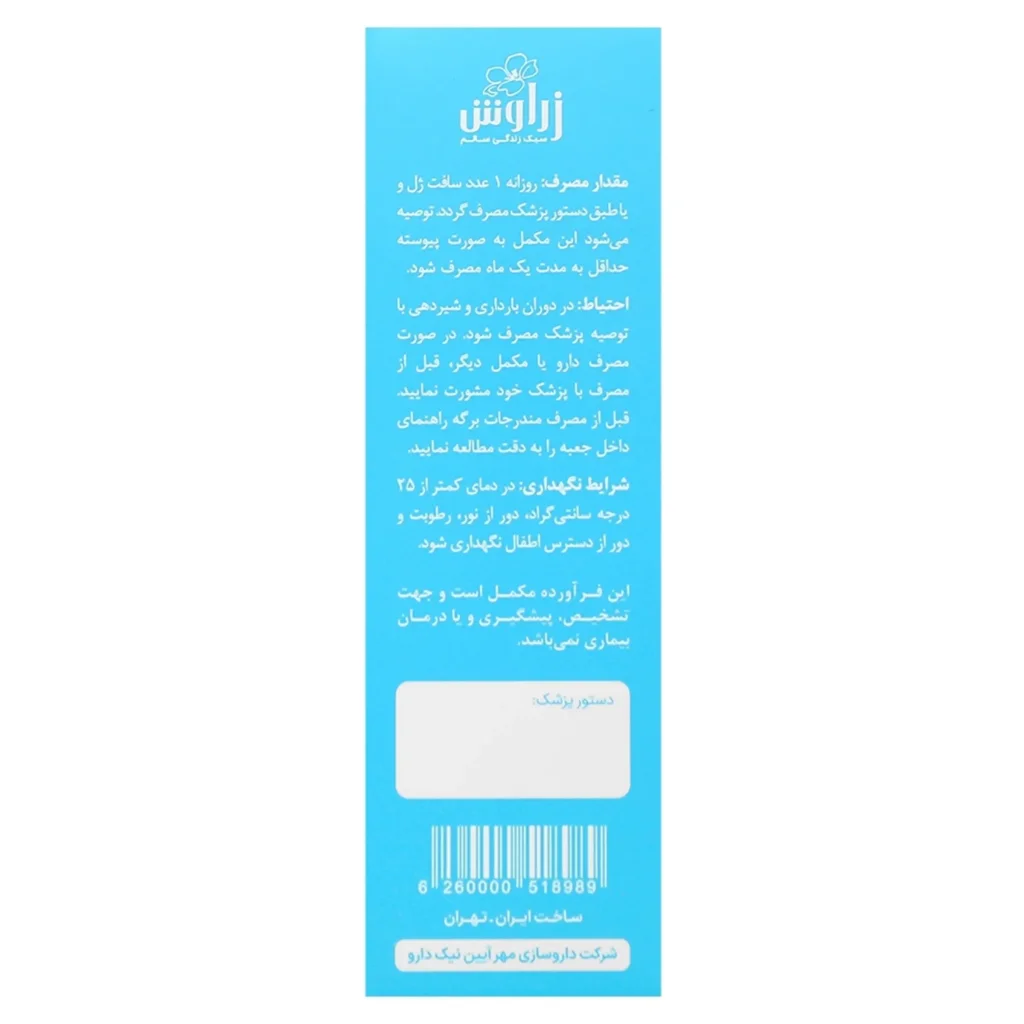 | مقدار و نحوه مصرف | روزانه 1عدد سافت ژل و یا طبق دستور دستور پزشک مصرف گردد. |