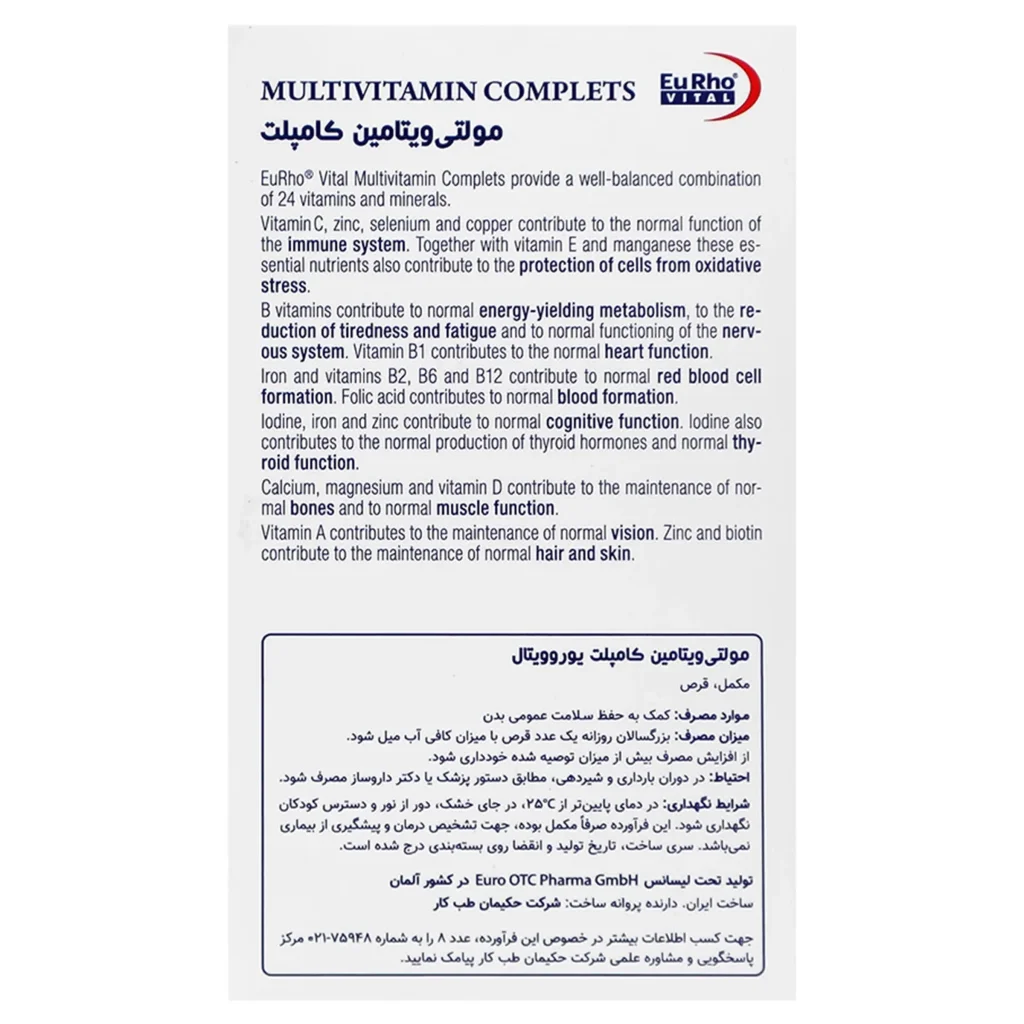 نحوه استفاده مولتی ویتامین کامپلت یورو ویتال (100عددی)