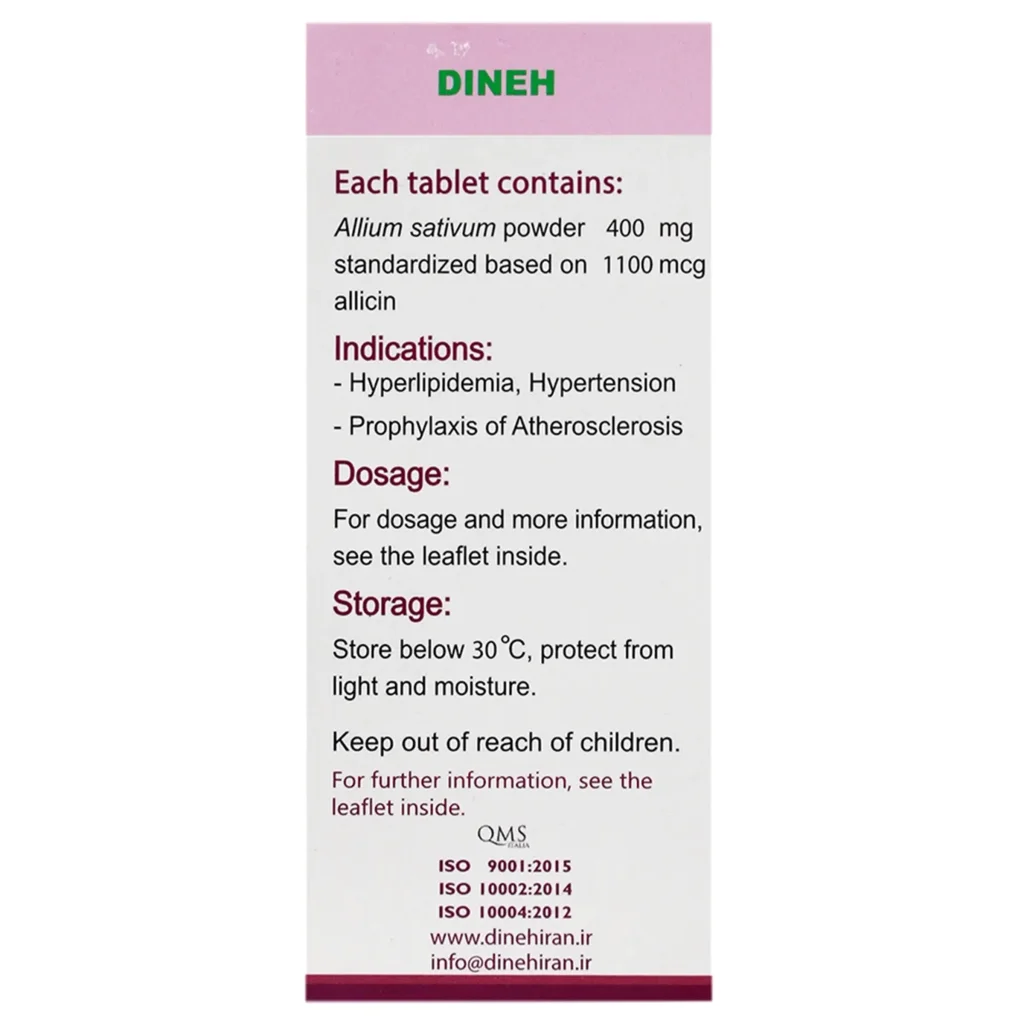 ویژگی های قرص سیر آلیوم اس دینه