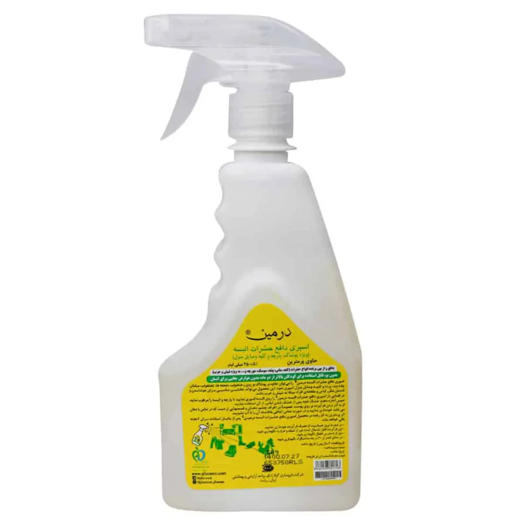 ویژگی های اسپری دافع حشرات البسه درمین (450 میلی لیتر)