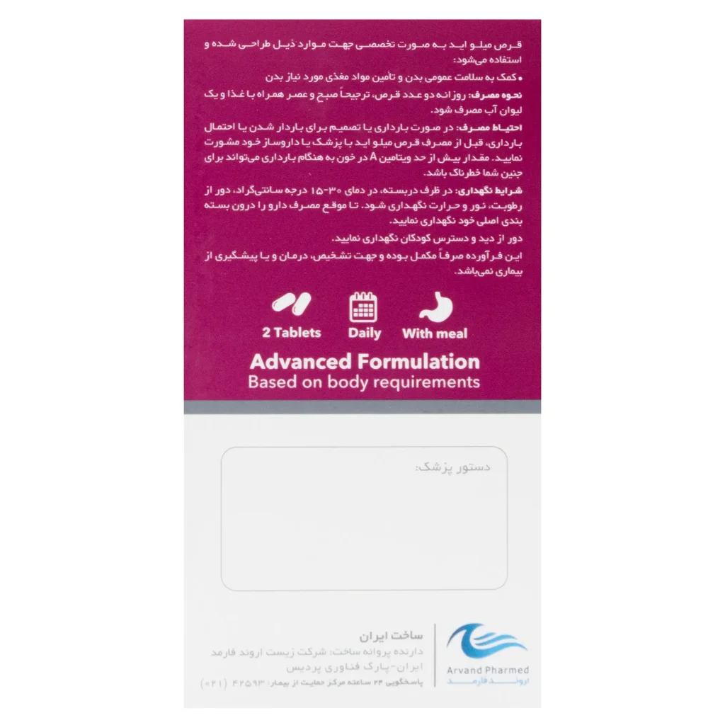 نحوه استفاده قرص میلو اید اروند فارمد :