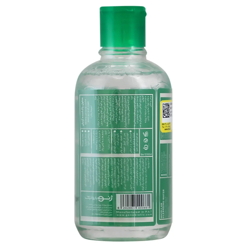 محلول پاک کننده آرایش ژنوبایوتیک (مخصوص برای پوست چرب و مختلط)، یکی از محصولات مراقبتی برای پوست بوده که به عنوان یک شوینده آرایشی مورد استفاده قرار گرفته و نیازی به آبکشی ندارد. این محصول با استفاده از تکنیک ساختار میسلی طراحی شده است و دارای یک سر آب دوست و یک دم چربی دوست خواهدبود. با استفاده از یک پد آرایشی میتوان این محلول را برای پاککردن آرایش مورد استفاده قرارداد. این محصول فاقد پارابن، مواد صابونی و حتی روغن و الکل بوده و به پوست صورت آسیب نمیرساند.