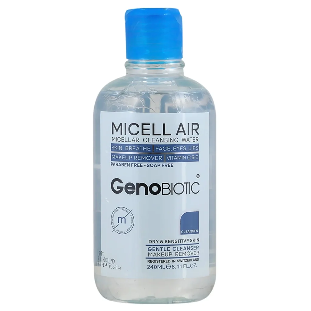 محلول پاک کننده آرایش ژنوبایوتیک (مخصوص برای پوست خشک و حساس)، یکی از محصولات مراقبتی برای پوست بوده که به عنوان یک شوینده آرایشی مورد استفاده قرار گرفته و نیازی به آبکشی ندارد. این محصول با استفاده از تکنیک ساختار میسلی طراحی شده است و دارای یک سر آب دوست و یک دم چربی دوست خواهدبود. با استفاده از یک پد آرایشی میتوان این محلول را برای پاککردن آرایش مورد استفاده قرارداد. این محصول فاقد پارابن، مواد صابونی و حتی روغن و الکل بوده و به پوست صورت آسیب نمیرساند.