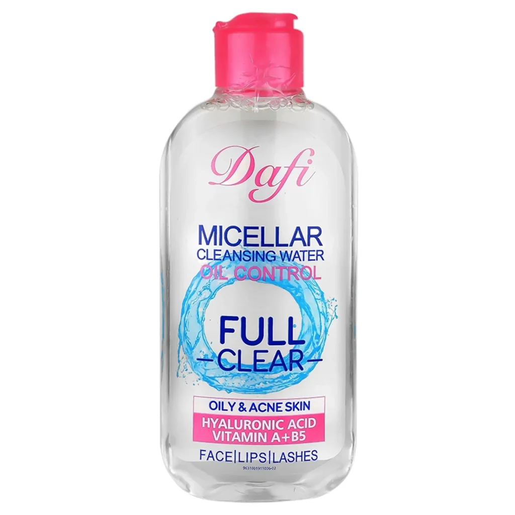 محلول میسلار واتر پوست چرب دافی حاوی هیالورونیک اسید، ویتامین A و B5 بوده و بیشتر مناسب افرادی است که پوست چرب و مستعد آکنه دارند. این افراد باید از محصولاتی استفاده کنند که مناسب پوست آنها فرموله شده و سبب کاهش جوش روی صورت آنها میشود. قدرت پاککنندگی این محصول فوقالعاده است و شما با استفاده از آن میتوانید صورت، چشم و لب خود را از آرایش پاک نمایید. محلول آرایش پاک کن پوست چرب دافی ضد حساسیت است و با 200 میلی لیتر حجم شما را به مدت طولانی از خرید دیگر محصولات مشابه بینیاز میکند. ویتامینهای موجود در این محصول سبب میشوند که در حین پاک نمودن صورت، چربیهای مفید پوست حفظ شوند و به آنها آسیبی نرسد.