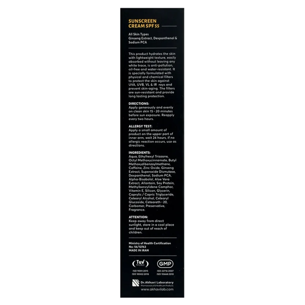 در فرمولاسیون این کرم از فیلترهای فیزیکی و شیمیایی بسیار قوی برای محافظت از پوست در برابر اشعههای مضر نور خورشید و رادیکالهای آزاد استفاده شده است . این کرم به دلیل داشتن عصارههای گیاهی همچون آلوئه ورا قادر است رطوبت مورد نیاز پوست را تامین کند و از ایجاد خشکی، التهاب و حساسیت بر روی پوست جلوگیری کند و باعث کند شدن روند پیری پوست شود.