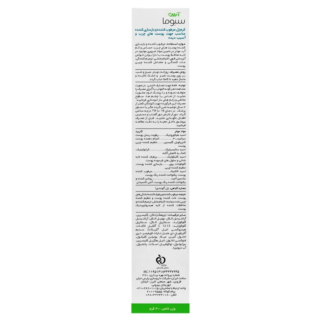 کرم ژل مرطوبکننده و بازسازیکننده پوست سبوما آردن