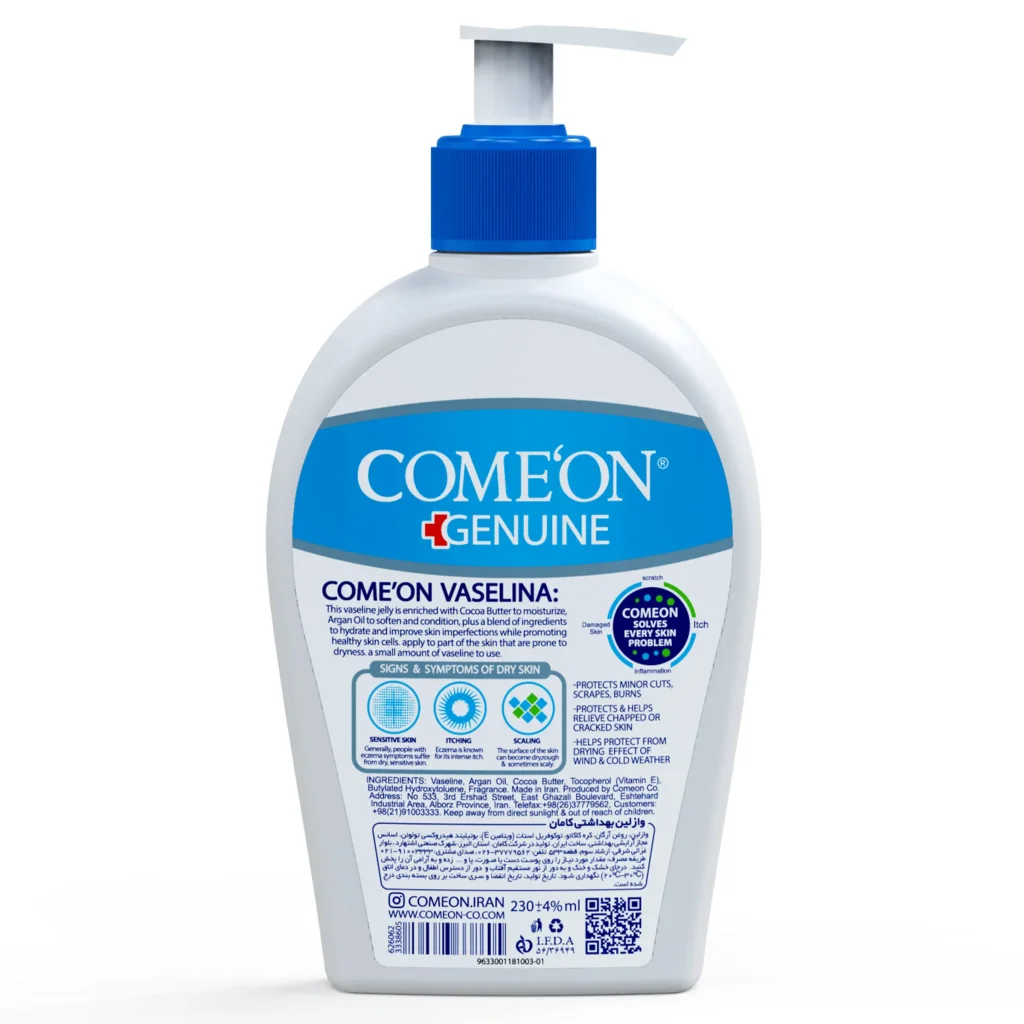 کرم وازلین کامان، یک مرطوب کننده و ترمیم کننده قوی برای پوست های خشک و خیلی خشک است و حاوی کره نارگیل، ویتامین E و روغن آرگان است. ترکیبات این محصول موجب حفظ خاصیت ارتجاعی پوست می شوند و بعد از یک دوره استفاده لک های پوستی و جای زخم ها را از بین می برند.این محصول تاثیر فوق العاده ای برای درمان اگزما و درماتیت دارد و برای همه قسمت های بدن حتی صورت و لب قابل استفاده است.