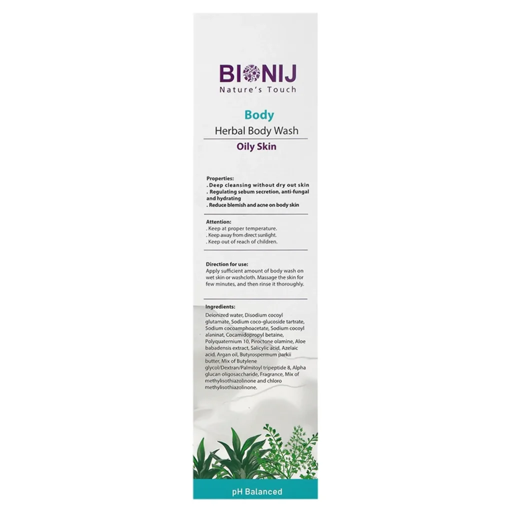 شامپو بدن گیاهی پوست چرب بیونیج ، یکی از محصولات بهداشتی برای پوست بدن بوده که با ایجاد رطوبت روی پوست از خشک شدن و التهاب پوست جلوگیری می کند. این محصول همچنین میتواند باکتریهای مضر و قارچها را از بین برده و پوستی خوشبو و سالم را به فرد هدیه دهد. این شامپو بدن حاوی عصاره گیاه آلوئه ورا و روغن آرگان بوده و در کنار ایجاد رطوبت روی پوست، به ایجاد بوی خوش هم کمک می کند. همچنین این محصول خاصیت ضدآکنه و ضدجوش داشته و از بروز جوش روی پوست جلوگیری می کند.