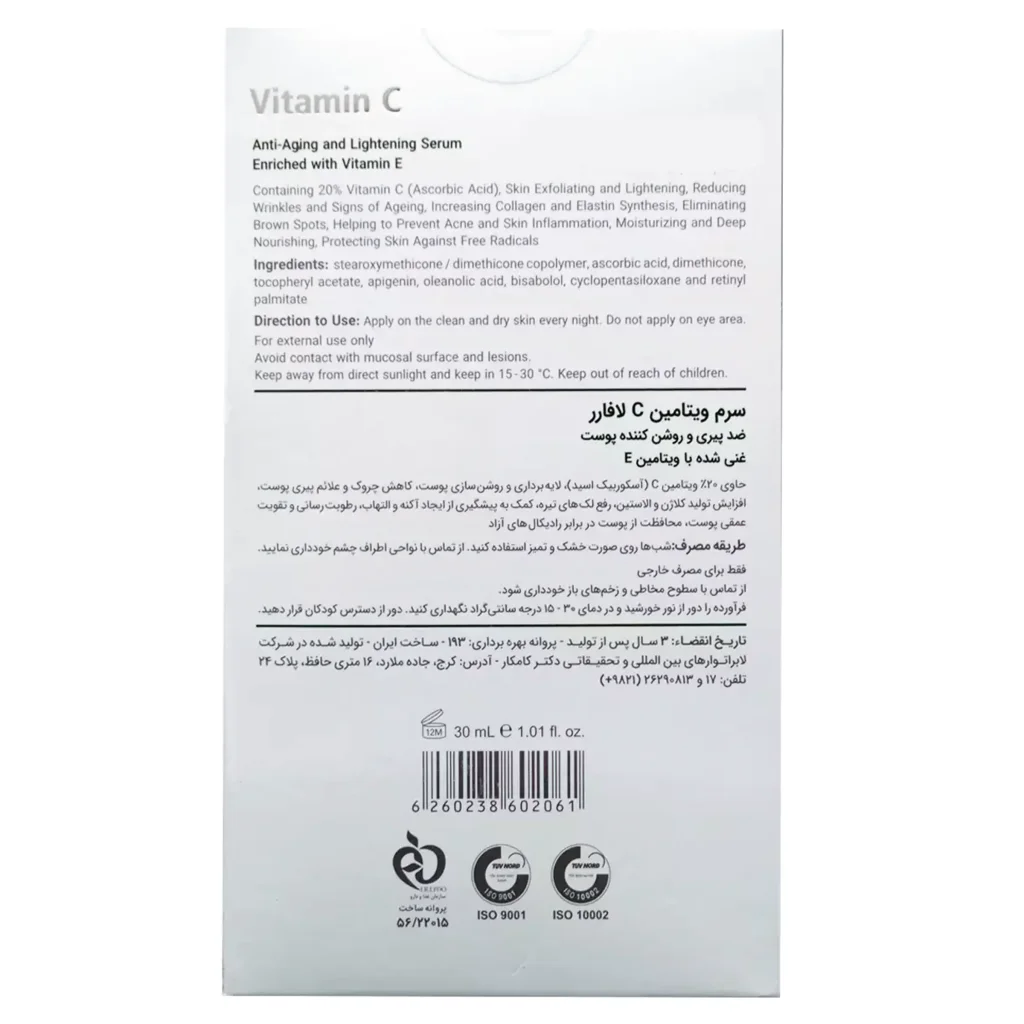 سرم ویتامین سی 20% ضد پیری و روشن کننده پوست لافارر