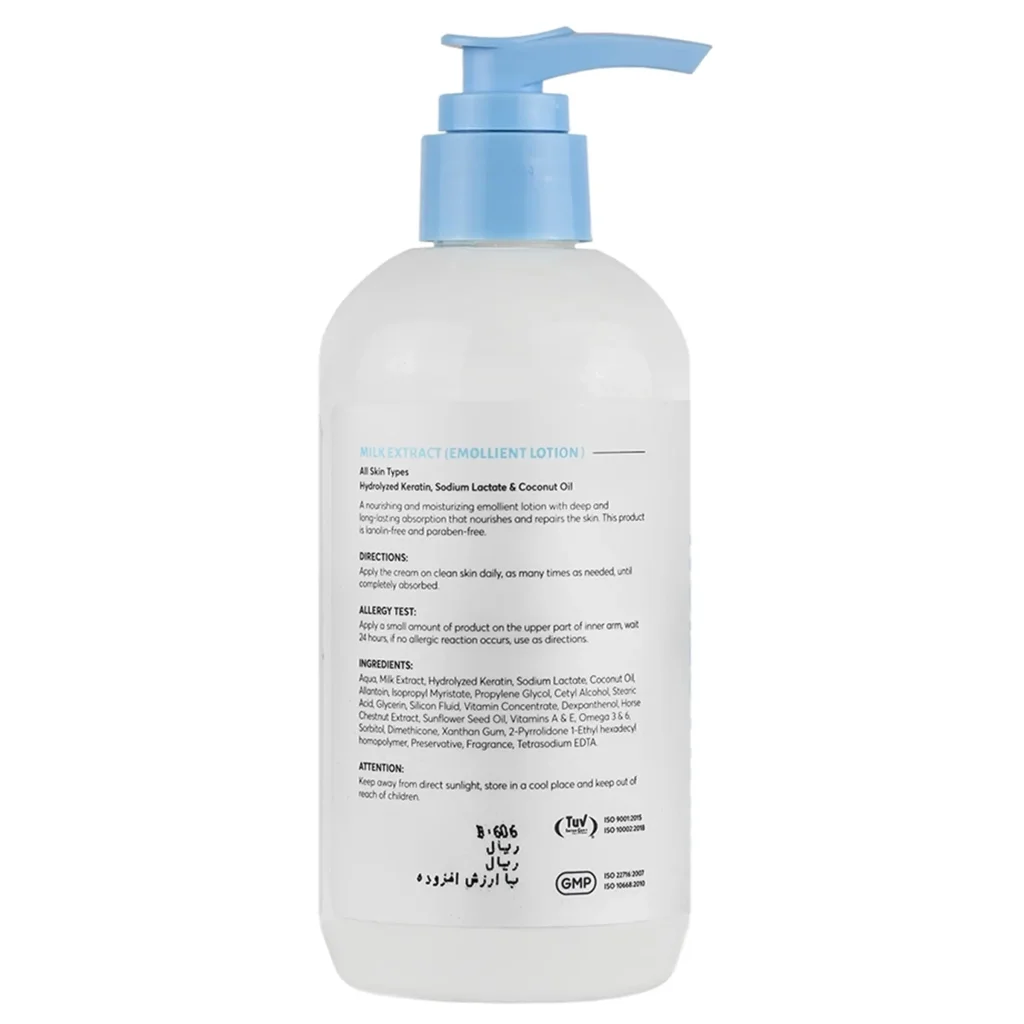 | مقدار و نحوه استفاده | مقدار مناسب از لوسیون را به تمام نقاط بدن بمالید و سپس به آرامی ماساژ دهید تا به حفظ نرمی و لطافت پوست کمک نماید. |