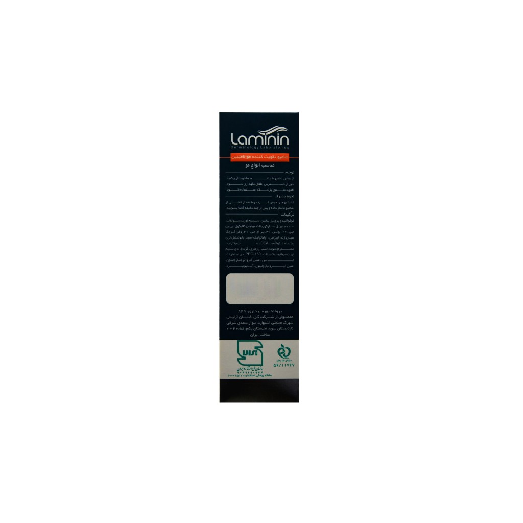 شامپو تقویت کننده مو لامینین جهت پیشگیری و درمان ریزش موی آندروژنیک و استحکام ساقه مو و شادابی مو مؤثر است. شستشوی روزانه، رنگ کردن، سشوآر و اتو، آلودگیها، استرس و… میتوانند روی ریزش و یا نازک شدن تارهای مو مؤثر باشند
