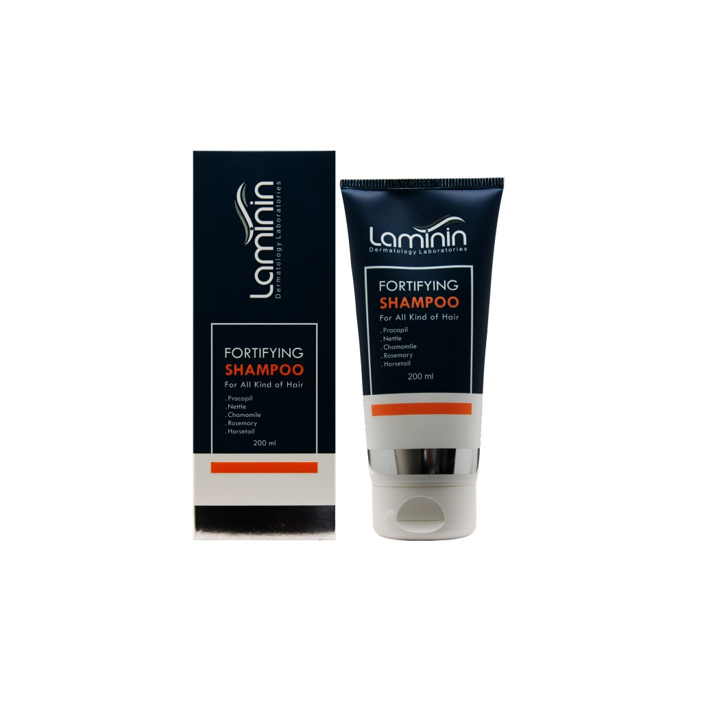 شامپو تقویت کننده مو لامینین جهت پیشگیری و درمان ریزش موی آندروژنیک و استحکام ساقه مو و شادابی مو مؤثر است. شستشوی روزانه، رنگ کردن، سشوآر و اتو، آلودگیها، استرس و… میتوانند روی ریزش و یا نازک شدن تارهای مو مؤثر باشند. شستشو با این محصول سبب افزایش جذب مواد فعال توسط ریشه مو و در نتیجه کاهش ریزش و افزایش رشد مو میشود. شامپو تقویت کننده و ضد ریزش دارای ترکیبات گیاهی شامل حاوی عصاره رزماری، عصاره گزنه، عصاره بابونه و عصاره دم اسب است.