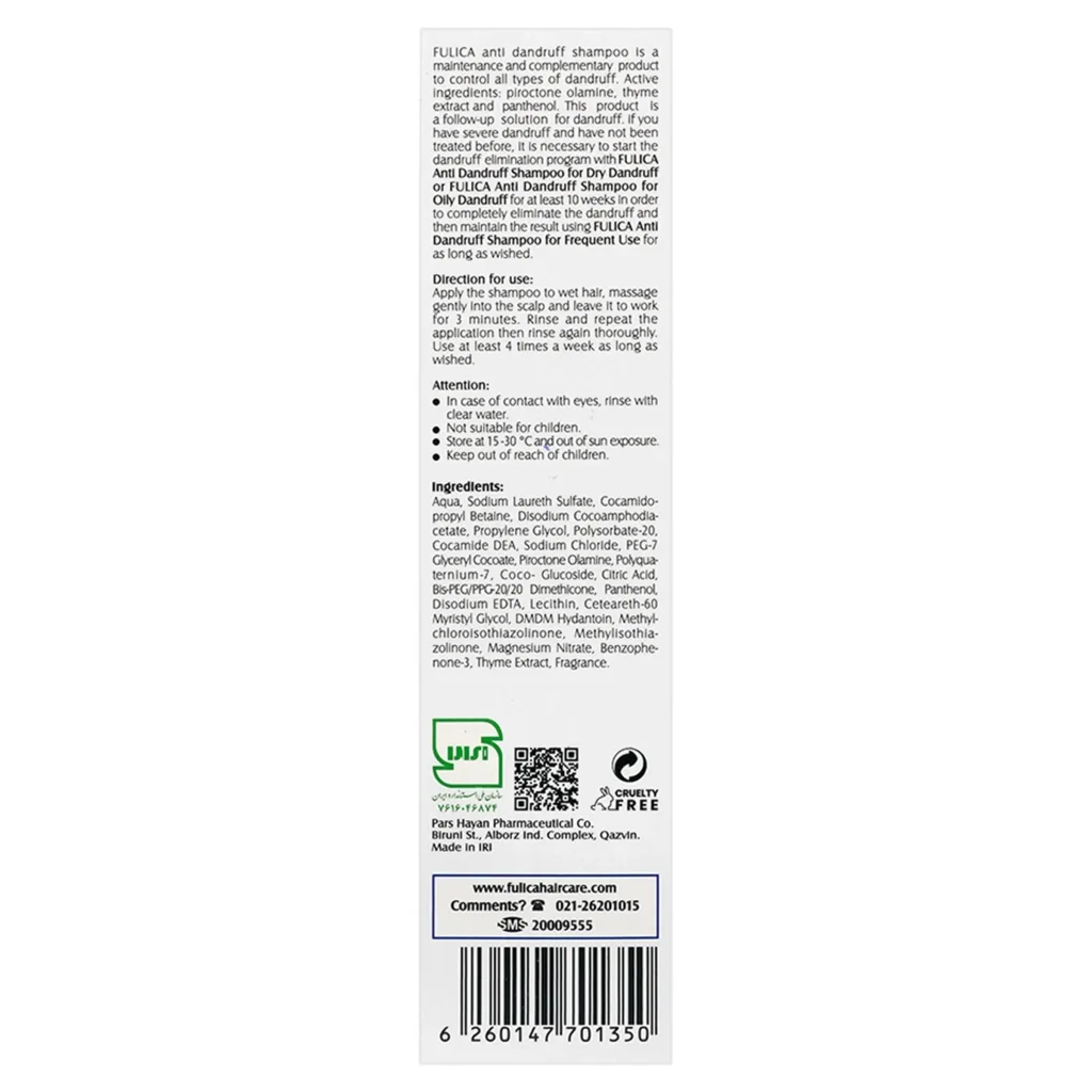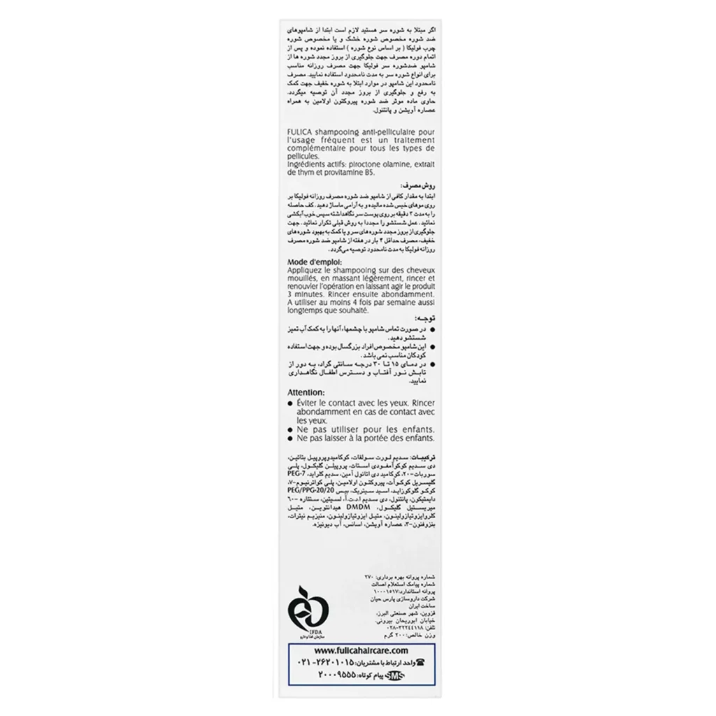 شامپو ضدشوره روزانه فولیکا، یکی از محصولات بهداشتی و مراقبتی برای موهای دارای شوره است. این محصول دارای خاصیت ضدخارش و ضدالتهاب برای پوست سر بوده و از بروز قرمزی، التهاب و خارش در کف سر جلوگیری خواهدکرد. این محصول برای انواع موها و به صورت روزانه قابل استفاده بوده و میتواند از چربشدن پوست سر و همچنین بروز مجدد شوره ممانعت به عمل آورد.