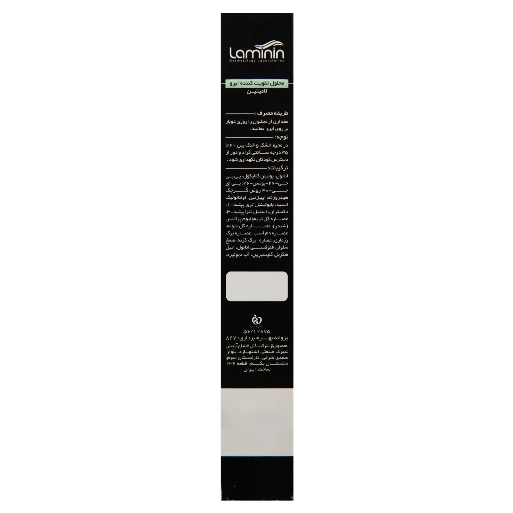 محلول تقویت و رشد ابرو لامینین یک محصول خاص است که با استفاده از مواد طبیعی و گیاهی، ابروهای شما را تقویت، پرحجم و زیبا میکند. اسپری روزانه این محلول روی ابروها باعث میشود که فولیکولهای مو در ابروها فعال شده و رشد سریعتر و سالمتری داشته باشند. این محلول همچنین با تغذیه کردن پوست و مو، از ریزش و شکستگی ابروها جلوگیری میکند.