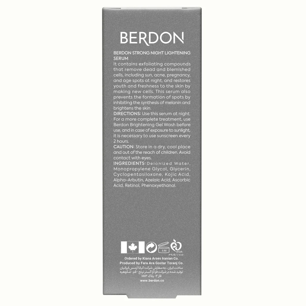 سرم روشن کننده قوی شب بردن با ترکیبی از مواد قدرتمند، به طور موثری لکهای تیره و تیرگیهای پوست را از بین میبرد. با استفاده منظم این سرم، به تدریج لکهای قهوهای و تیرگیهای پوست را روشنتر شده و از پوستی صاف و یکدست برخوردار خواهید شد. این محصول با کنترل تولید ملانین و مهار فعالیت آنزیم تیروزیناز، از ایجاد مجدد لکهای تیره جلوگیری میکند و با تحریک سلولهای پوست برای سنتز کلاژن و الاستین، در افزایش ضخامت و استحکام پوست موثر است.