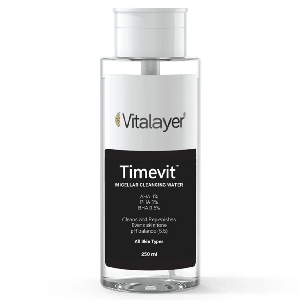 محلول پاک کننده آرایش تایم ویت ویتالیر محصولی ویژه در دنیای مراقبت از پوست است که با بهرهگیری از ترکیبات نوآورانه و فرمولاسیون پیشرفته، تجربهای بینظیر از پاکسازی و شفافسازی پوست را به ارمغان میآورد. این محلول با داشتن ترکیبات فعال AHA به میزان یک درصد، PHA به میزان یک درصد و BHA به میزان 0.5 درصد، علاوه بر پاکسازی عمیق آرایش و آلودگیهای پوست به لایهبرداری ملایم و افزایش شفافیت پوست کمک میکند.