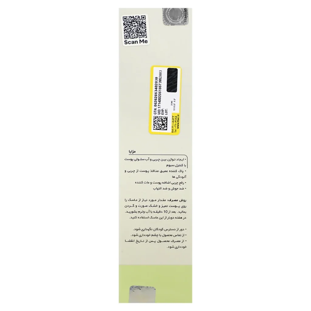 - مقدار مناسبی از ماسک را روی پوست صورت و گردن (بجز دور چشم) بمالید و پس از ۱۰ دقیقه با آب فراوان آبکشی کنید. متناسب با نیاز پوست میتوانید این عمل را تا ۲ بار در هفته انجام دهید.