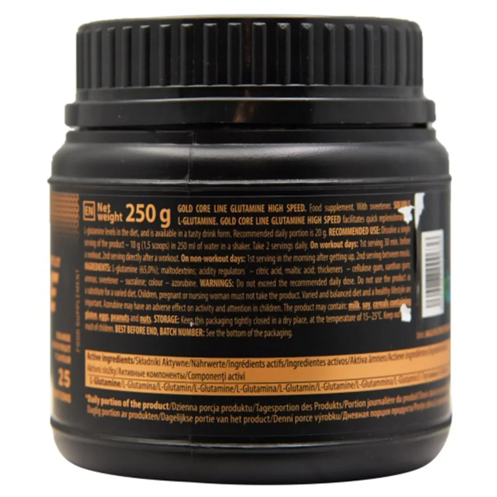 پودر گلوتامین های اسپید گلدکر لاین ترک نوتریشن (250 گرم)، یکی از مکملهای معروف بدنسازی است که قدرت حلشوندگی بالایی دارد. این محصول حاوی اسیدآمینههای ضروری بدن میباشد که در هنگام تمرینهای سنگین بدنسازی مورد نیاز هستند. با مصرف این مکمل، آسیبهای وارده به عضلات حین بدنسازی جبران شده و به ریکاوری عضلات هم کمک میشود. یکی از محتویات موجود در این محصول، ال گلوتامین خالص است. این ماده به افزایش سرعت جذب اسیدآمینههای ضروری کمک خواهدکرد. در کنار داشتن ال گلوتامین، مصرف این مکمل به بازپروری ال گلوتامینهای موجود در مواد غذایی هم کمک میکند.