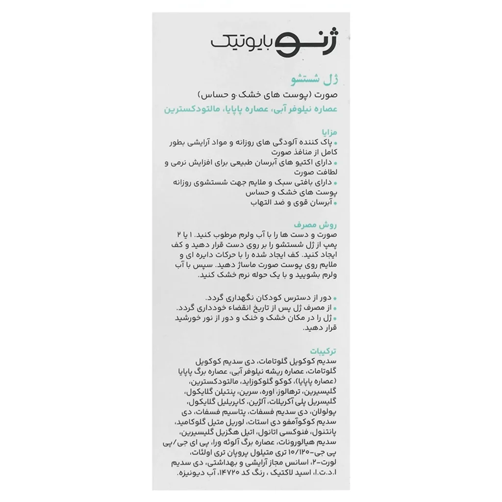 ژل شستشو صورت پوست خشک و حساس ژنوبایوتیک