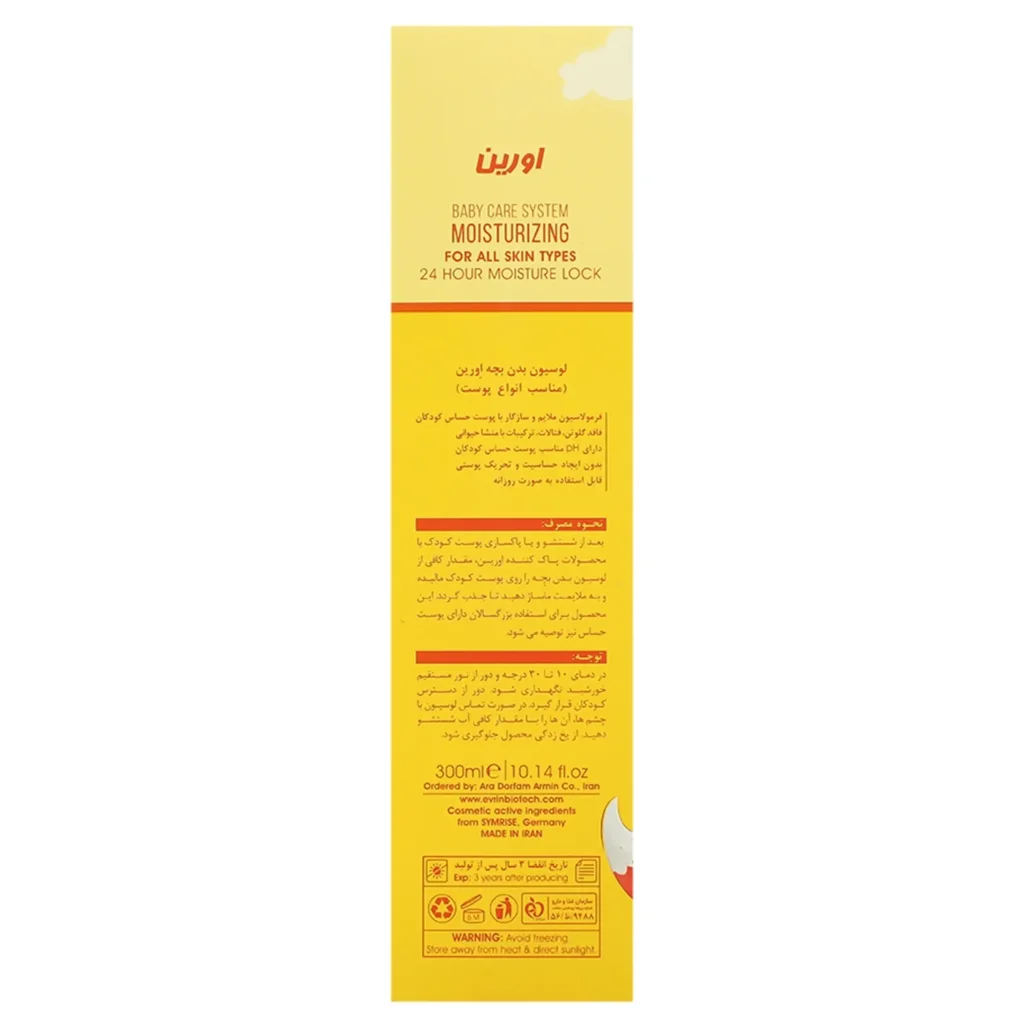 لوسیون بدن بچه اورین، یکی از محصولات مراقبتی برای پوست بدن کودک است. این لوسین خاصیت التیامبخشی برای پوست آسیبدیده داشته و بدون ایجاد حساسیتزدایی به نرم و لطیفکردن پوست کودک کمک خواهدکرد. این لوسیون از پوست بدن کودک در مقابل اشعههای مضر خورشید مراقبت کرده و در نهایت رطوبت مورد نیاز بدن او را تامین میکند.