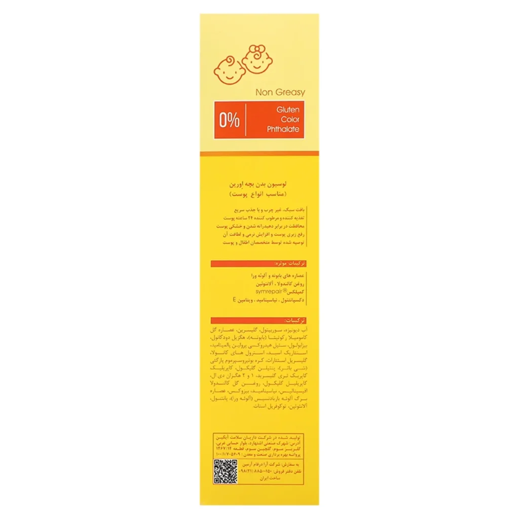 لوسیون بدن بچه اورین، یکی از محصولات مراقبتی برای پوست بدن کودک است. این لوسین خاصیت التیامبخشی برای پوست آسیبدیده داشته و بدون ایجاد حساسیتزدایی به نرم و لطیفکردن پوست کودک کمک خواهدکرد.