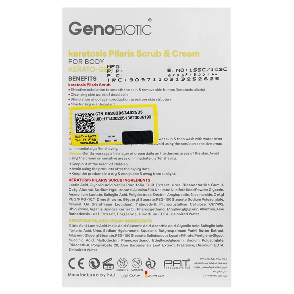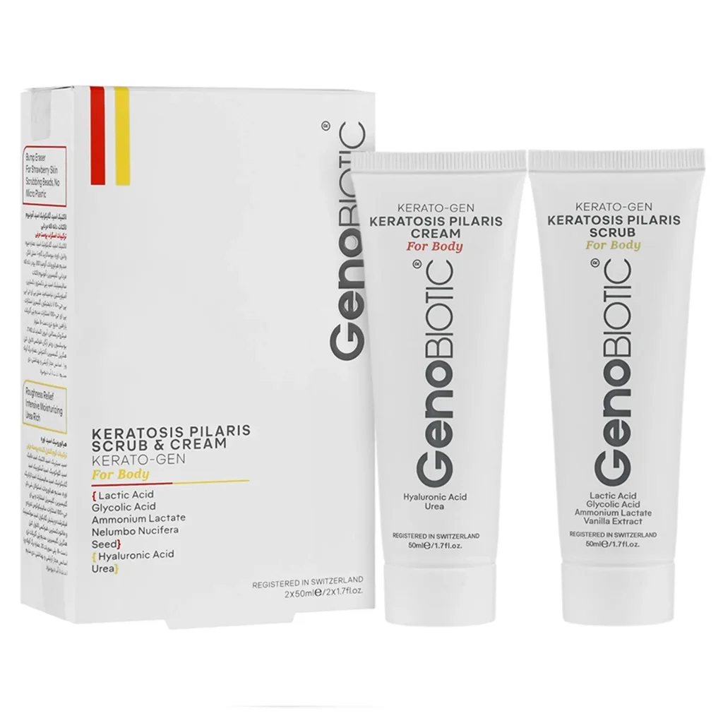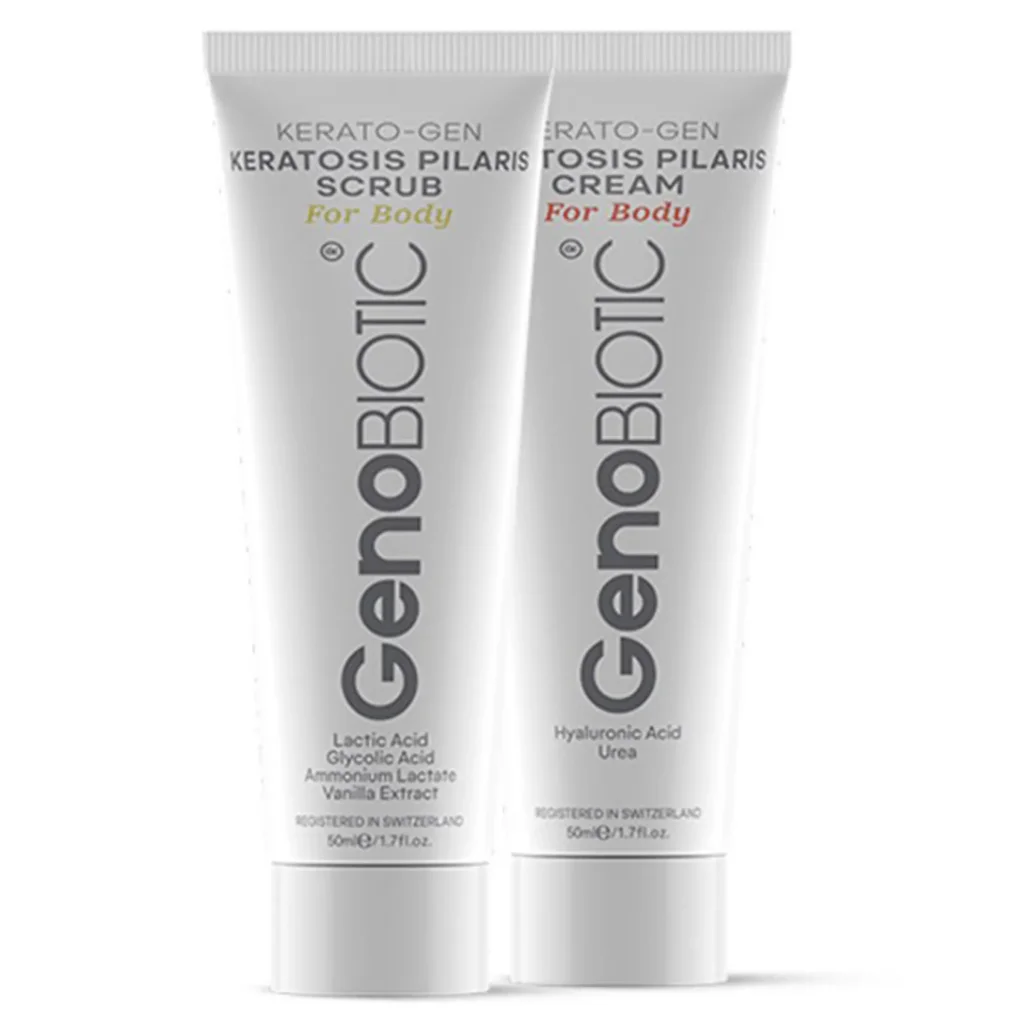 پک دو عددی اسکراب و کرم کنترل کننده پوست مرغی ژنوبایوتیک راهکاری ایده آل برای بازگرداندن صافی و یکنواختی به پوست شماست. این پک شامل دو محصول مکمل است که با ترکیبات پیشرفته، به رفع دانه ها و برجستگی های پوست مرغی کمک می کنند و پوستی نرم، صاف و درخشان به ارمغان می آورند.