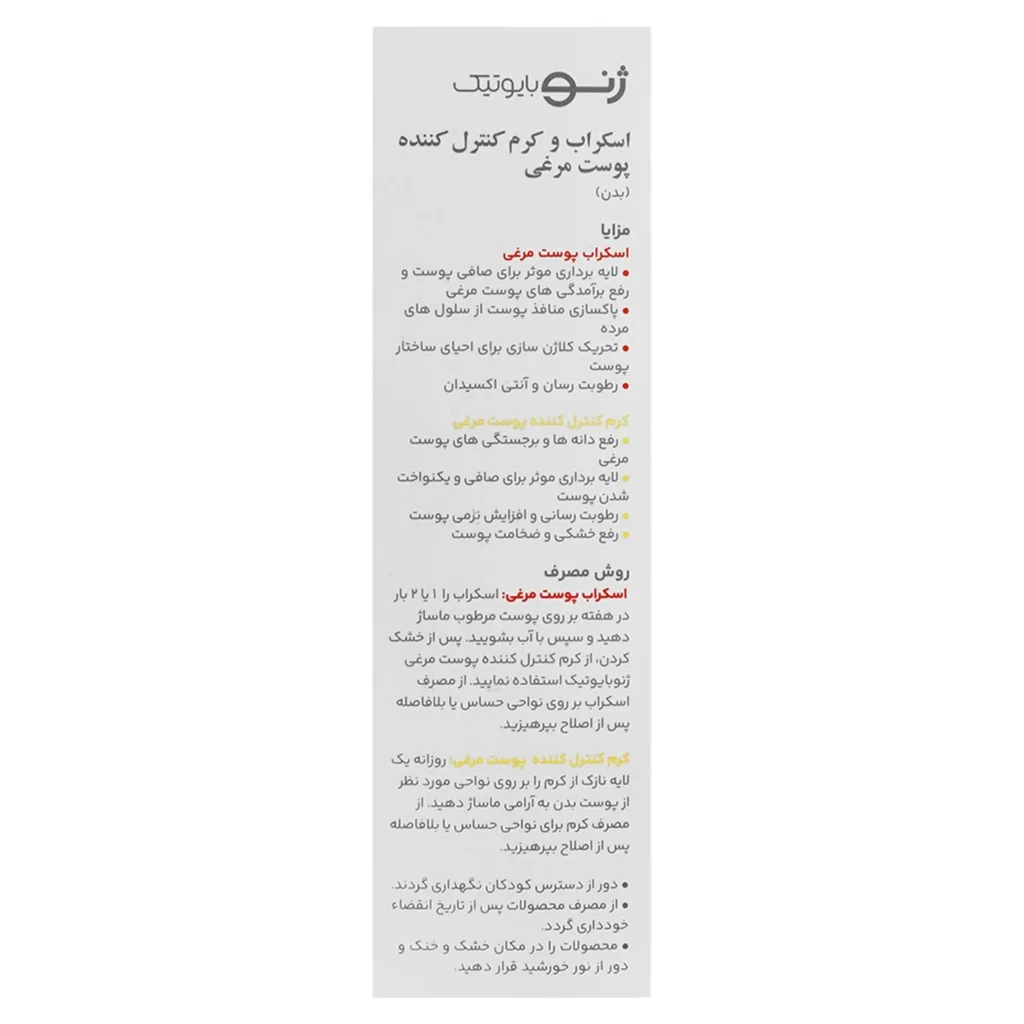 ویژگی های اسکراب و کرم کنترل پوست مرغی ژنوبایوتیک