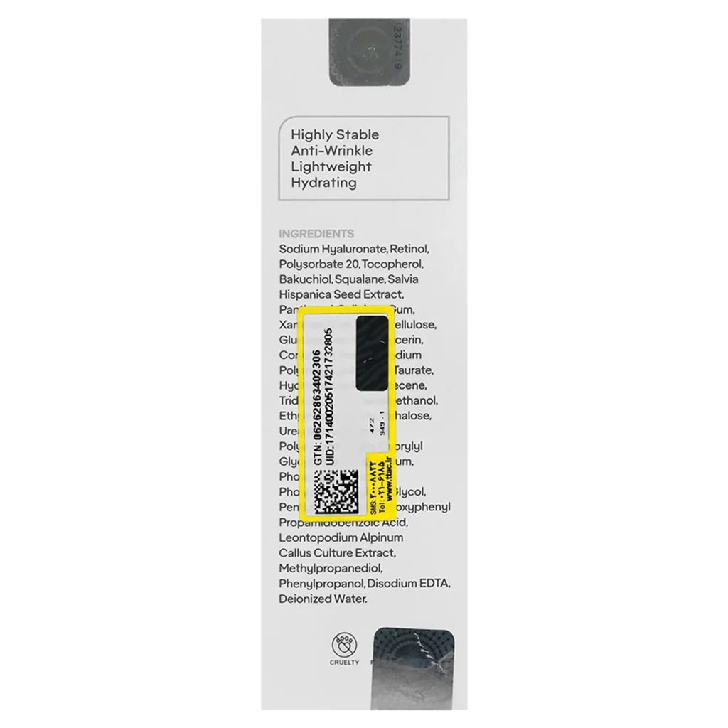 اسکوالان مادهای گیاهی است که به رطوبترسانی پوست کمک میکند و باعث میشود که پوست نرم و شاداب بماند. این ترکیب همچنین به کاهش التهاب و قرمزی پوست کمک میکند و عملکرد سد دفاعی پوست را بهبود میبخشد. باکوچیول نیز به عنوان یک آنتیاکسیدان گیاهی عمل میکند و علاوه بر خاصیت ضد پیری، به کاهش حساسیتهای پوستی کمک میکند. این ترکیب همچنین باعث افزایش ماندگاری رتینول در سرم میشود و اثرات آن را تقویت میکند.