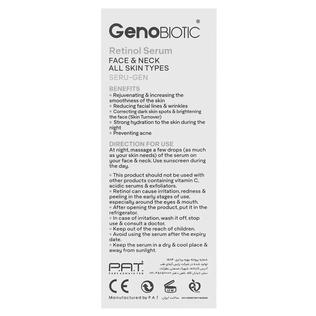 نحوه مصرف سرم رتینول 1% صورت و گردن ژنوبایوتیک