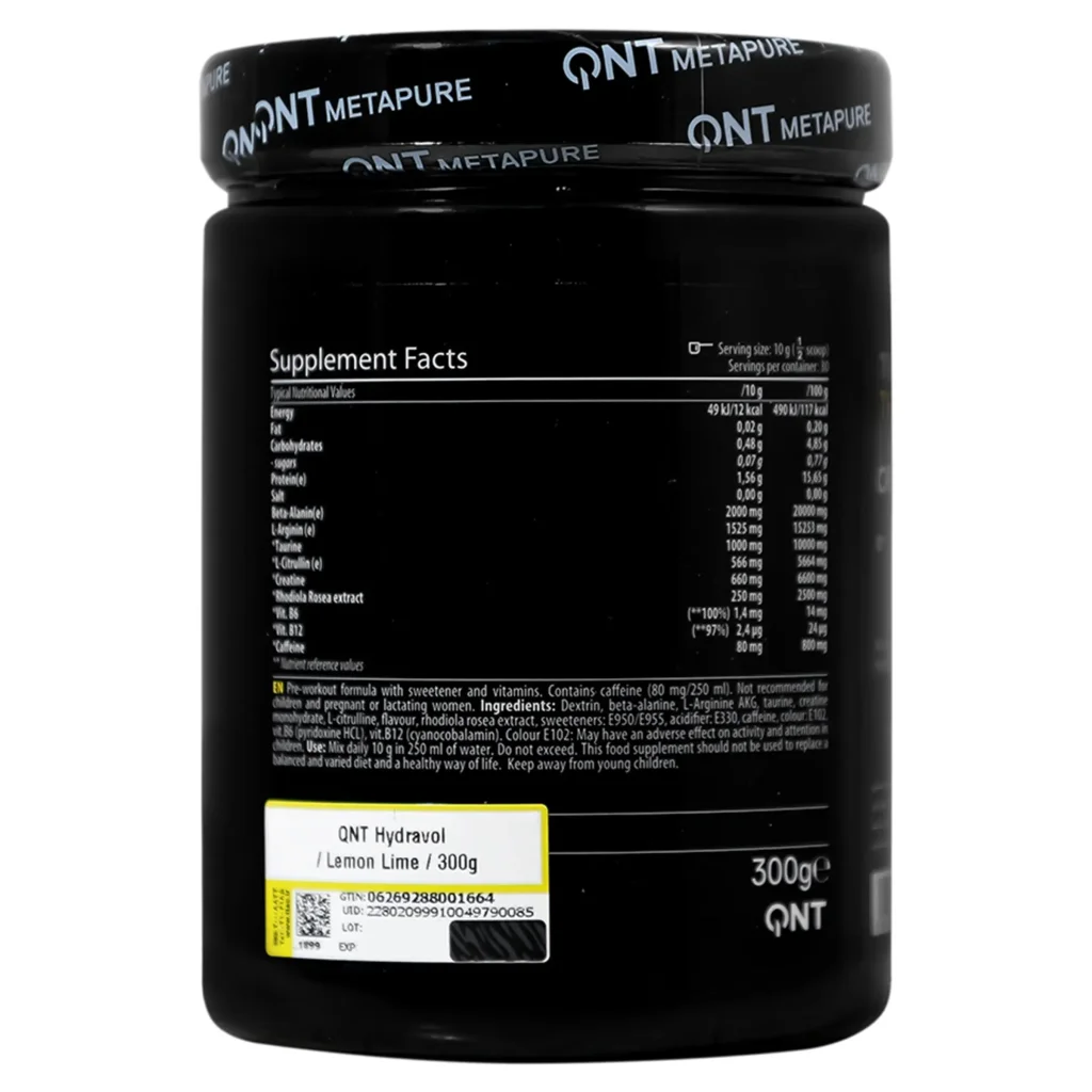 مکمل هیدراول کیو ان تی شامل ال- آرژنین، بتا آلانین و پمپ RXتورین، ال سیترولین، کراتین، عصاره رودیولا روزا، ویتامین B6، ویتامین B12 وکافئین است. این مکمل بدون شکر اضافه تهیه شده که مزیت قابل توجهی در کیفیت این محصول دارد که باید قبل از تمرین مصرف شود. علاوه بر این، حاوی ویتامین B6 و B12 است که در متابولیسم انرژی نقش دارند و اثربخشی قبل از تمرین را تقویت میکنند. یکی از اثرات مهم هیدراول بر گردش خون است. این مکمل با تحریک تولید اکسید نیتریک در بدن، مستقیماً بر گشاد شدن رگهای خونی تأثیر میگذارد. همچنین، این مکمل به مواد مغذی اجازه میدهد بهتر در ماهیچهها گردش کنند، مواد زائد را سریع تر از بین ببرند و پخش اکسیژن را افزایش دهند. این باعث میشود تا در طول تمرینات انرژی بهتری داشته باشید و به همان اندازه هم قدرت خود را حفظ کنید. هیدراول همچنین در ریکاوری بعد از تمرین عمل میکند. گشاد شدن رگهای خونی به ماهیچهها امکان تأمین مواد مغذی بیشتر را میدهد، ماهیچهها بهتر تغذیه میشوند و در نتیجه بعد از تمرینات بهبود مییابند.