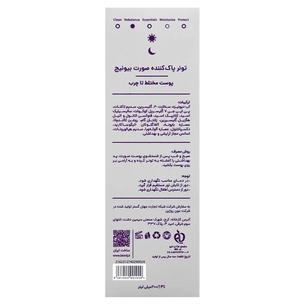 تونر پاک کننده صورت بیونیج مناسب پوست مختلط تا چرب (Bionij Facial Toner)