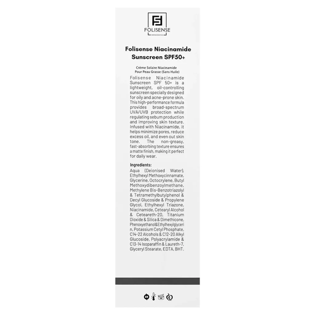 - چه زمانی کار نخواهد کرد: کرم ضد آفتاب حاوی نیاسینامید فولی سنس درمان قطعی آکنه نیست و تنها به عنوان محصول مکمل و پیشگیرانه عمل میکند. برای درمان آکنه فعال شدید، نیاز به داروهای تخصصی است.