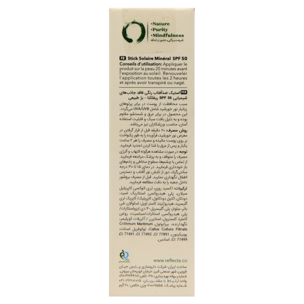 ضدآفتاب استیکی رفلکتا، محصولی نوآورانه با فرمولاسیون ۱۰۰٪ مینرال (فیزیکی) است که برای کسانی که به ضدآفتابهای شیمیایی حساسیت دارند یا به دنبال محصولی با حمل و استفاده آسان هستند، طراحی شده است. این محصول با ایجاد یک سد فیزیکی بر روی پوست، اشعههای مضر UVA و UVB خورشید را بازتاب میدهد و از پیری زودرس و آفتابسوختگی جلوگیری میکند. طراحی استیکی آن باعث میشود تا بدون دخالت دست، به راحتی روی پوست صورت و بدن قابل استفاده باشد.