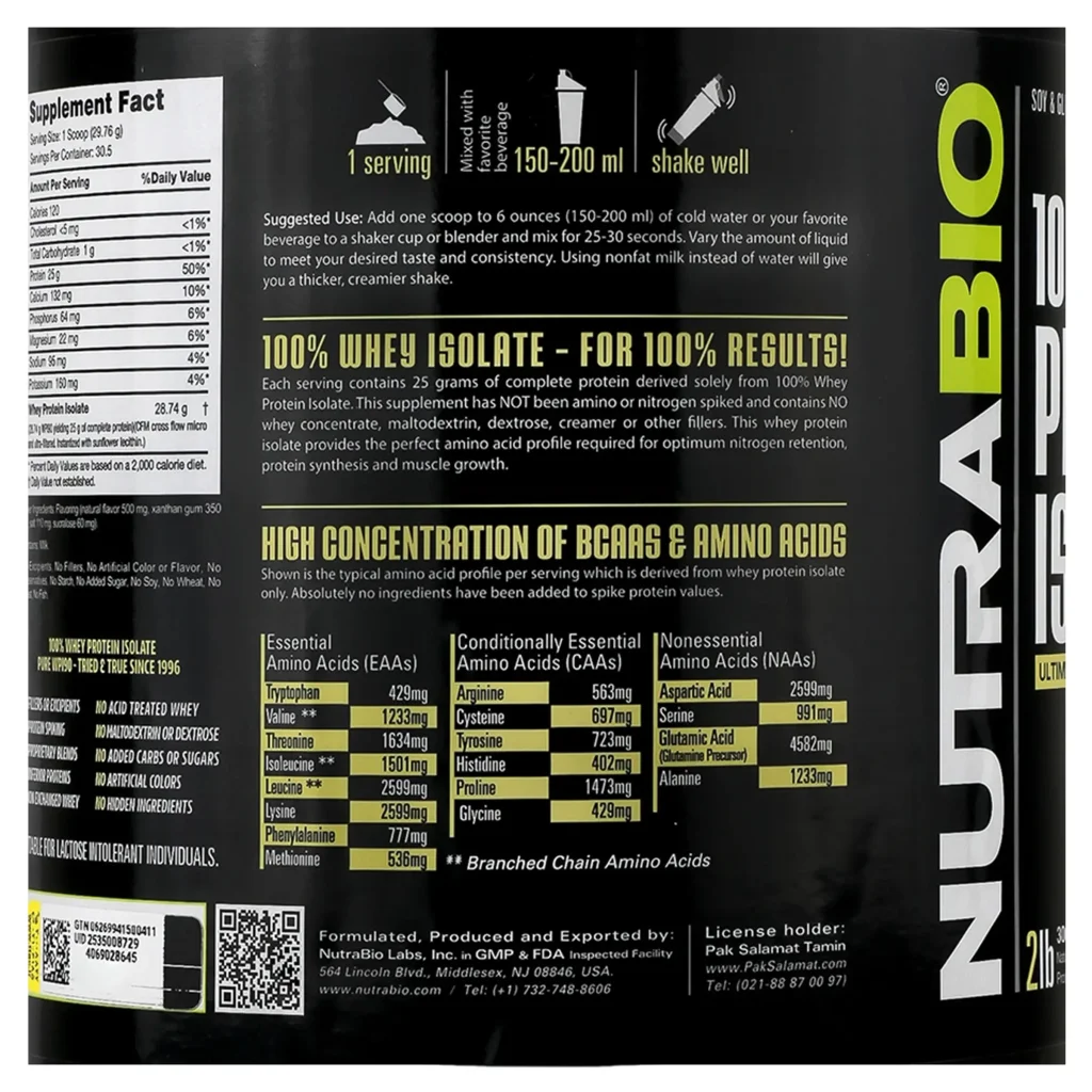 پروتئین وی ایزوله نوترابایو (907 گرمی) یک مکمل غذایی با کیفیت بالاست که برای افرادی که به دنبال بهبود عملکرد ورزشی، رشد و حفظ عضلات و بهبود سلامت کلی خود هستند، طراحی شده است. این محصول با فراهم کردن 25 گرم پروتئین خالص در هر سروینگ، به عنوان یک منبع غنی از پروتئین شناخته میشود که به طور موثری نیازهای پروتئینی بدن را تامین میکند. یکی از ویژگیهای برجسته پروتئین وی ایزوله نوترابایو، محتوای چربی و کربوهیدرات کم آن است.